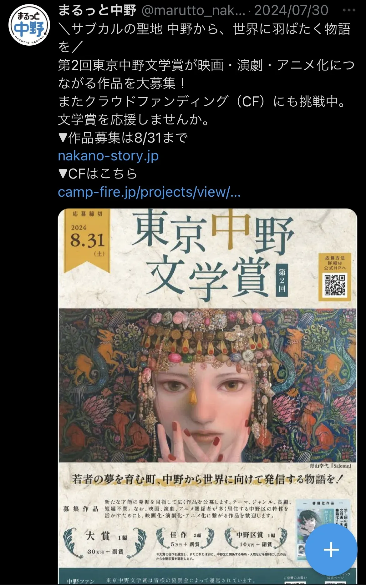 ・中野区ー中野区公式観光サイト「まるっと中野」Twitterに掲載頂きました。ーhttps://x.com/marutto_nakano/status/1818097239409271162?s=46