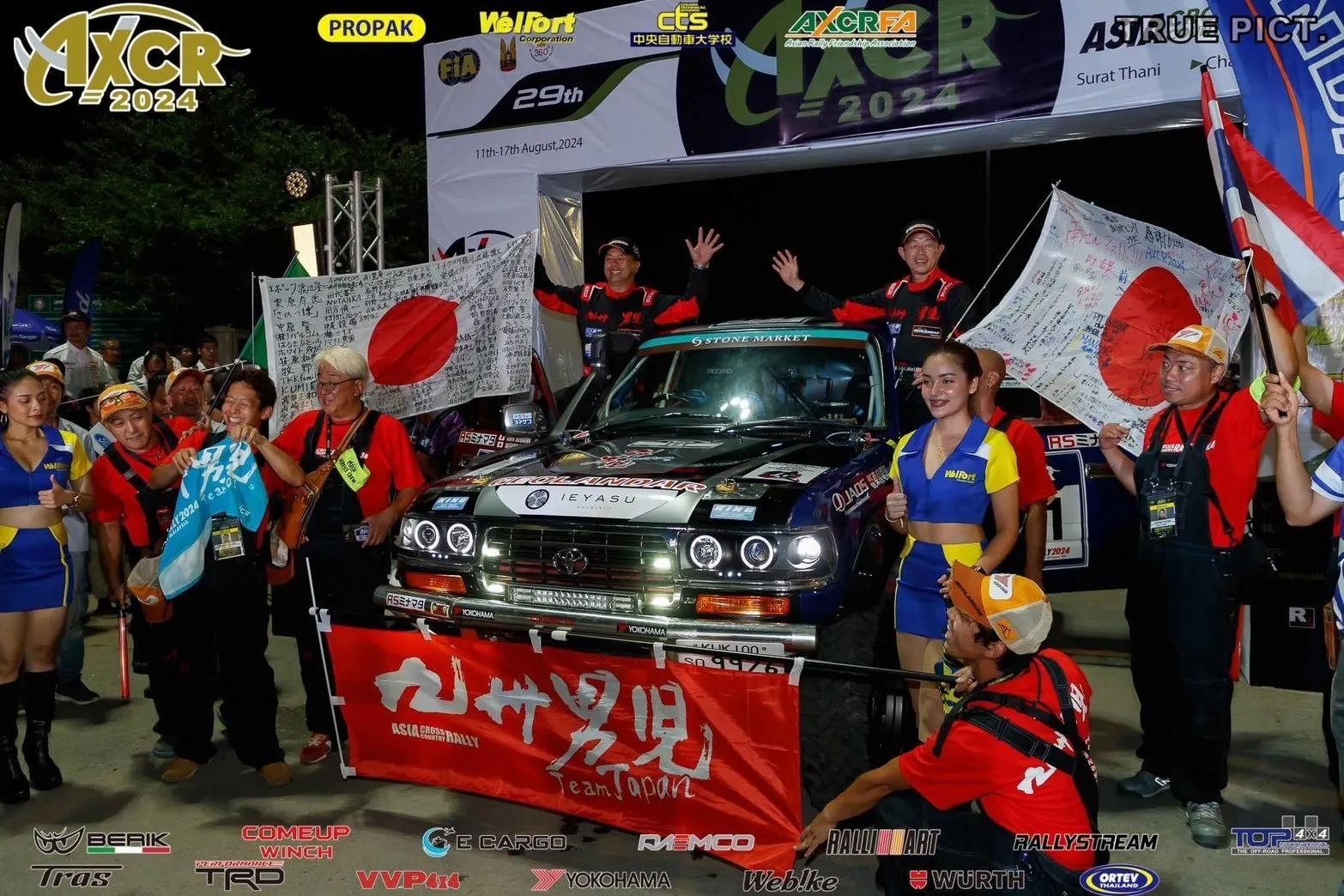 2024/08/18 09:00今年もたくさんの皆様に応援いただき、誠にありがとうございました。おかげさまで、無事にゴールすることができました。 今年のコースは山岳地帯がメインで、当初予定されていたタイ〜マレーシア間のコースは世界情勢などの関係でタイ国内のみでの開催となりました。初日からコース幅が狭いロックセクションが多く難易度の高いコースでしたが、過去の経験を活かし、順調に順位を上げる事ができました。しかし、途中でトランスミッションの3速と4速を失うトラブルが発生し、修理を試みましたが復帰には至らず、残された1、2、5速で残りのレースを闘うことになりました。少しでも上位に行こうと攻めの走りで前車を追走し、その結果、車をさらに壊してしまい、大きなペナルティも受けてしまいました。 もちろん、守りの走りも大事ですがそれでは上位を狙うことは難しい。改めてラリーの駆け引きの難しさを思い知らされました。結果として、最終日は18位総合26位にまで順位を落としてしまいましたが、最後まで精一杯走らせて頂きました。 今年も参加できたのは、応援してくださったスポンサーの皆様、クラウドファンディングで支援してくださった皆様、私たちの活動を支えてくださる全ての皆様のおかげです。また、改めて動画で詳しくご報告させていただきますが、まずは完走のご報告とせていただきます。 みなさま本当にありがとうございました。九州男児 Team Japan 一同 もっと見る