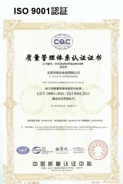 品質も、中国最大の認証機関CQCでのISO9001認証を取得しています。