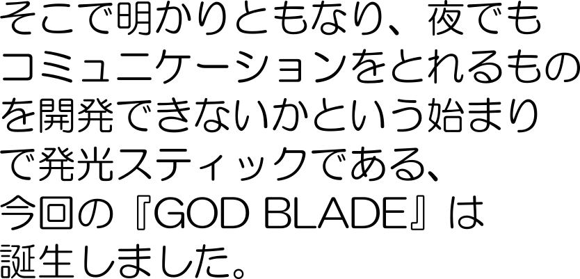 クラウドファンディングにてご支援いただいた方たちは、次世代ペンライト『GOD BLADE』の親のような方々と思っておりますので、是非ご一緒に育ててください。