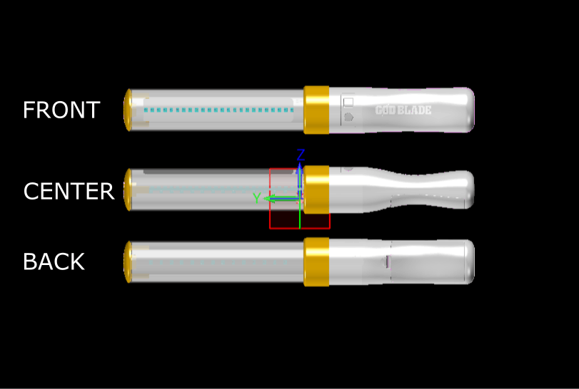 スィングで文字が出て&多彩な発光パターンの次世代ペンライト「GOD BLADE」は、砲弾LED1個を懐中電灯のように底部に実装した既存品と違い、表裏38個の高輝度チップLEDをプリント基板に実装して中央に配置してます。