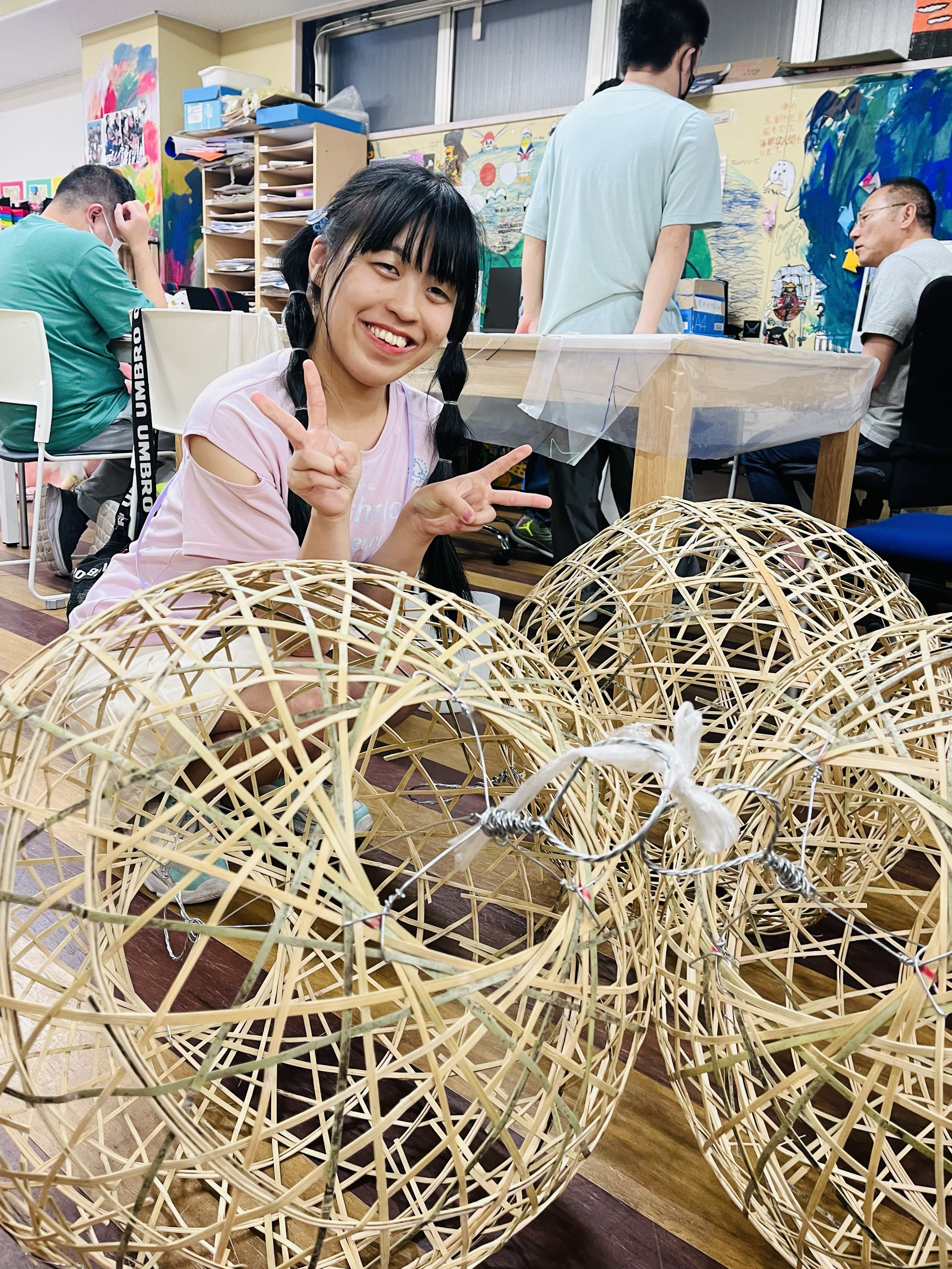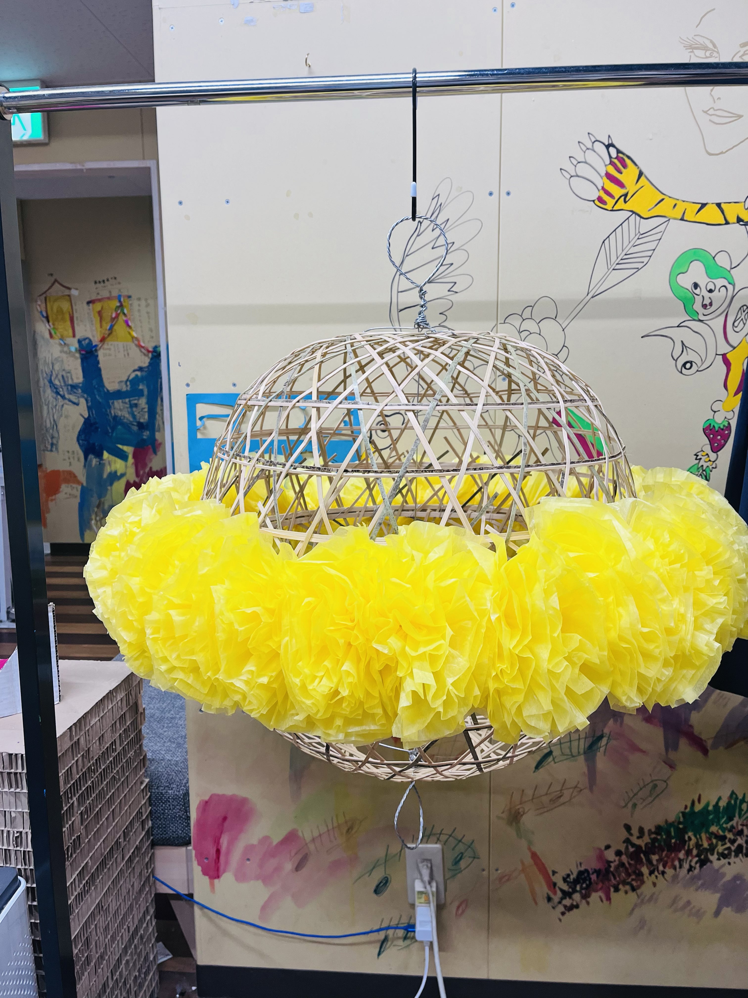実は仙台七夕まつりで展示されている吹き流しにはアーケードごとに定めたサイズ規定があります。私たちが展示する予定のぶらんど〜む一番町アーケードには、くす玉を含めた全長3m、薬玉のサイズは15号以上という規定があります。それらをクリアしつつ、見た目の迫力と初心者の挑戦しやすさなどを考慮して18号、直径70cmの竹籠を使うことにしました。