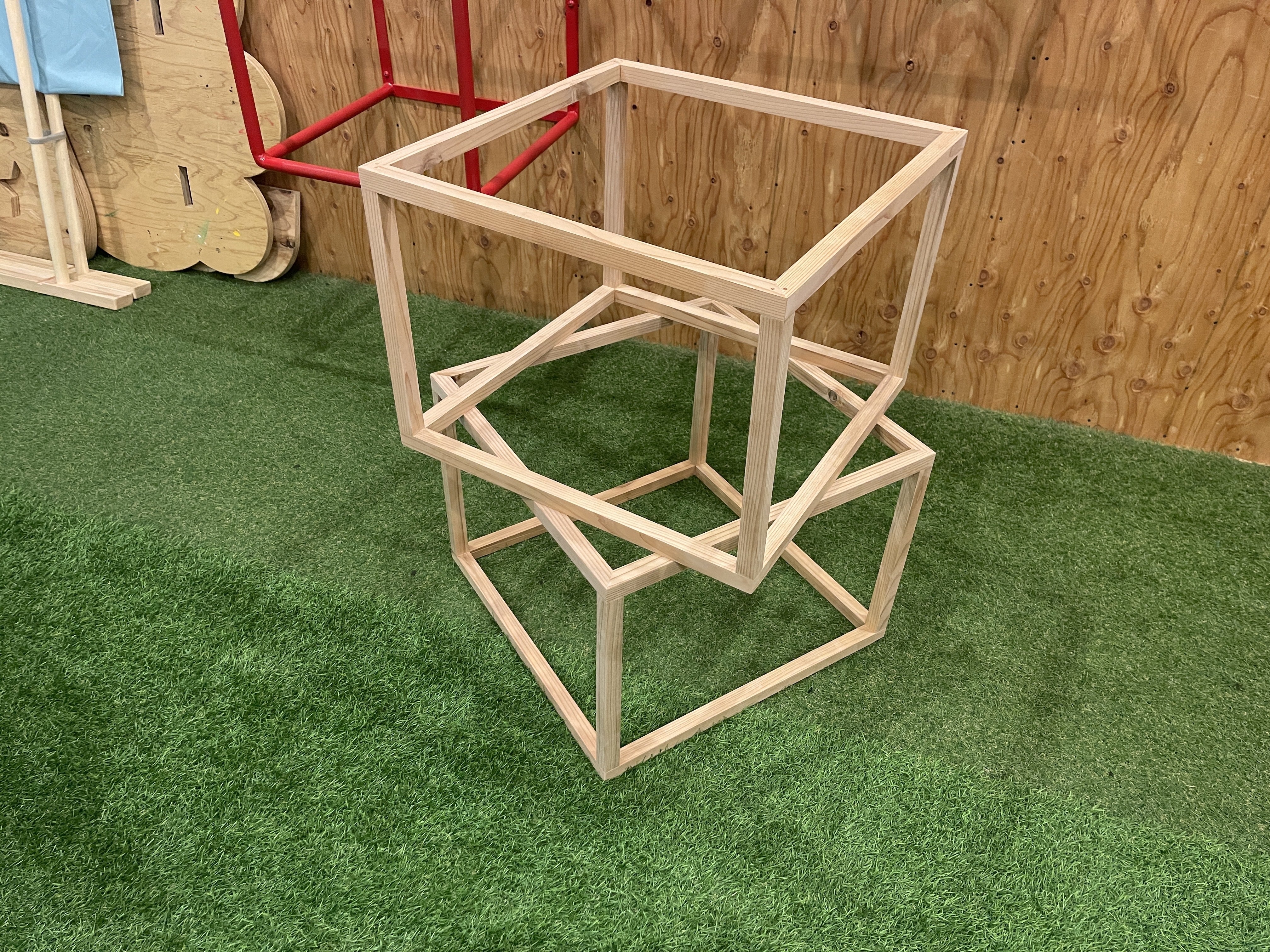 イメージ画像だけでは想像つかないかもしれませんが、薬玉と吹き流しの間のこのパーツは四角い行燈のようなものになる予定です。この骨組みも間も無く完成です!