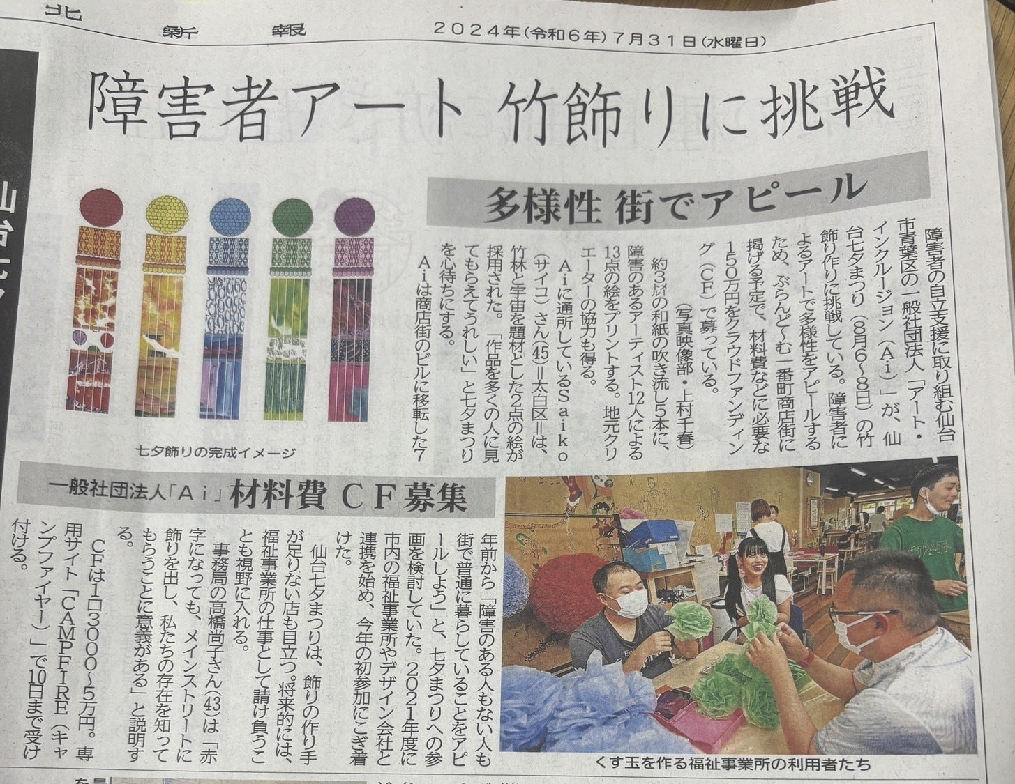 7月31日(水)の河北新報朝刊に七夕プロジェクトについての記事が掲載されました。