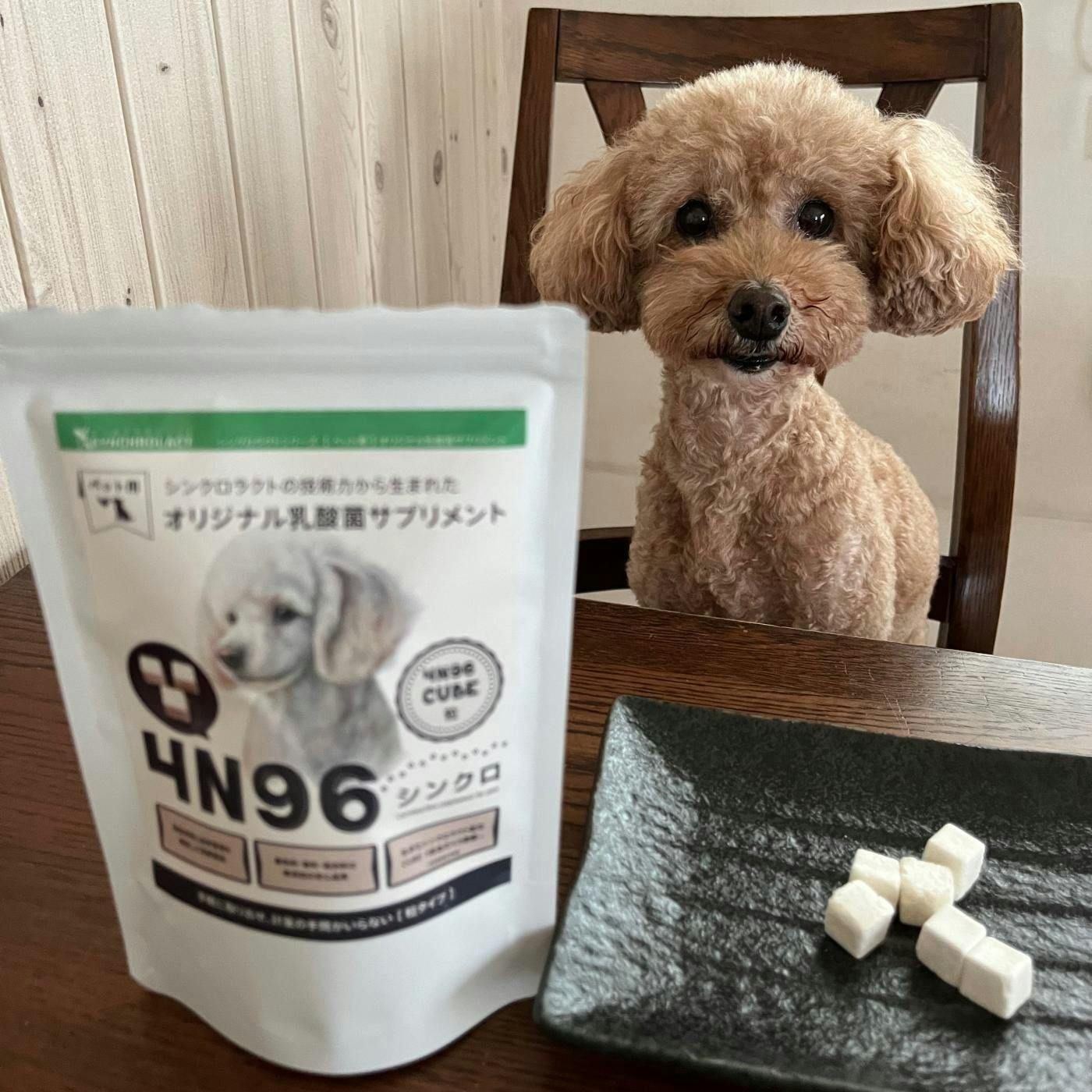 4N96 CUBE (ペット用 乳酸菌サプリメント 粒)シンクロラクトの技術から生まれたオリジナル乳酸菌 4N96サプリメントは、毎日30,000頭以上の家畜に健康維持のために給与されているプロバイオティクス乳酸菌を配合しています。