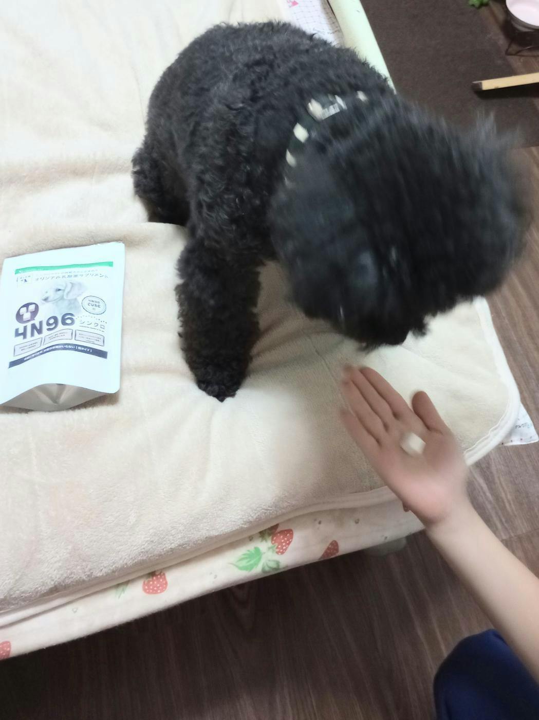 愛犬のトイプードルに見せると、これ美味しいものだよ食べてもいいのとじっと見ています