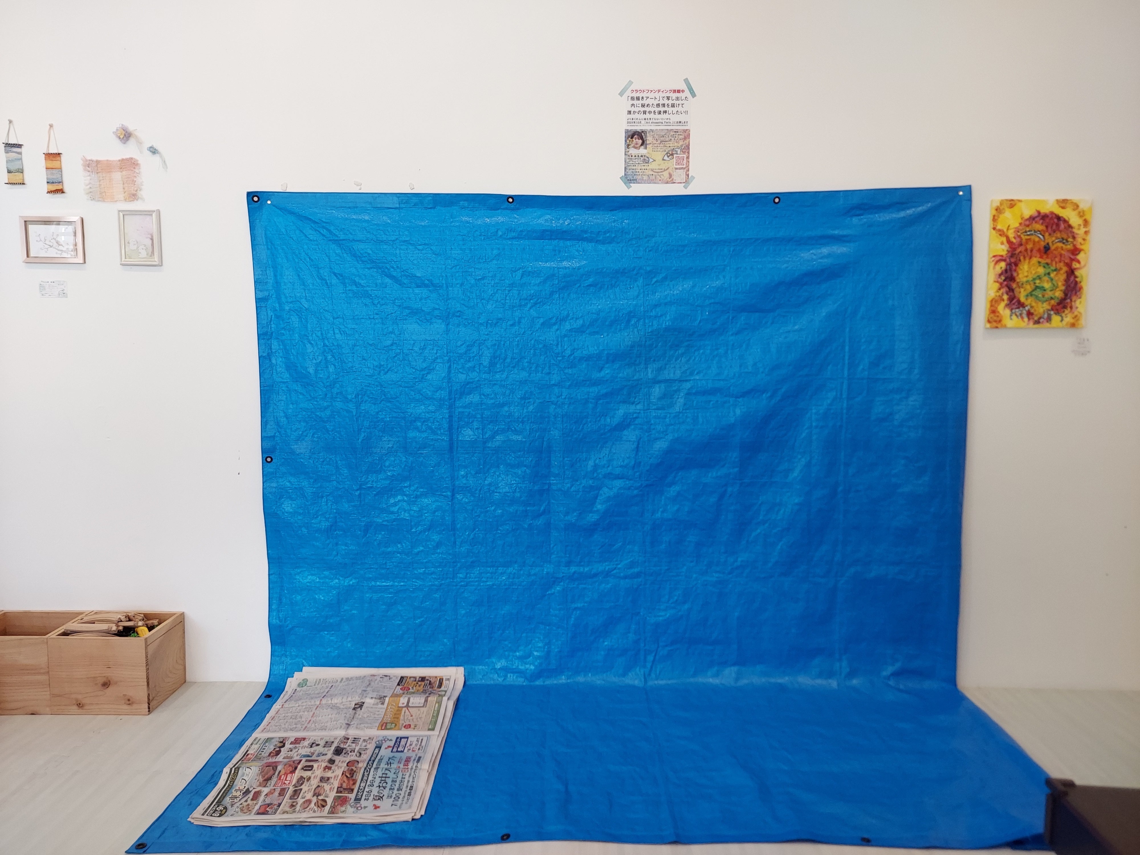 今日は明日のライブペイントの準備をしました。私の描く隣で子供服等の販売のイベントもするそうで。スペースを確保しましたが絵の具他に飛び散らないか心配です。初めて他の人の見る前で描くことに今からもう緊張と不安で体調の具合が少し変です。見てほしい思いがあるけど見てほしくないとも思って矛盾が頭の中グルグルしてます。他のライブペイントしているアーティストさん達ほんとすごいです。肝の座らせ方習いたいです。本番前が一番具合悪いの共感できる人いますでしょうか。ともかくやると決めたので気合いいれます。クラファンの宣伝もしたいですけど、一番は見てくれる人の心が鮮やかになっていってほしいです。
