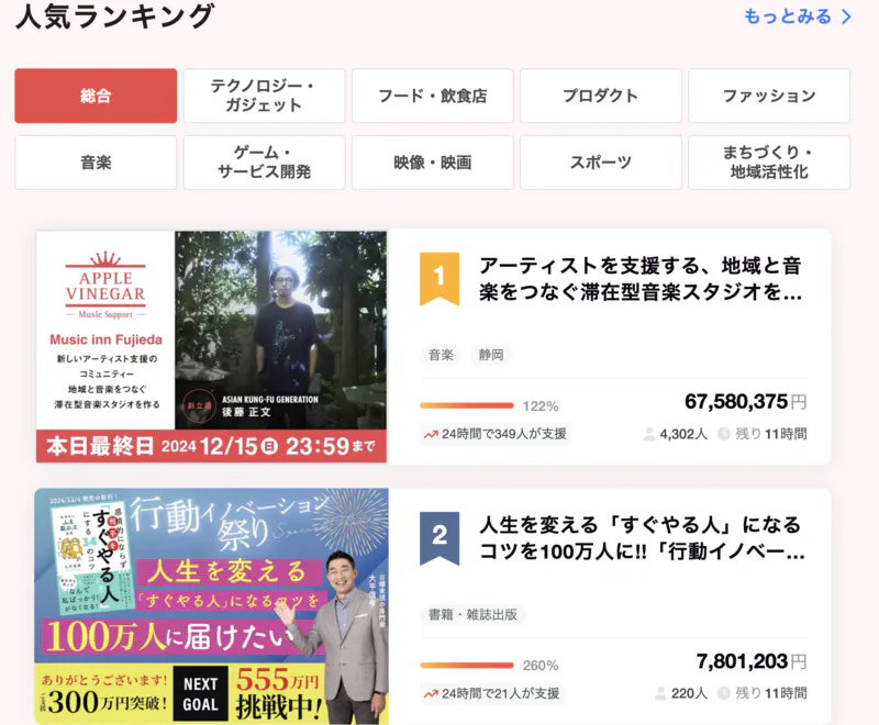 様々なジャンルのクラウドファンディングがあるなか