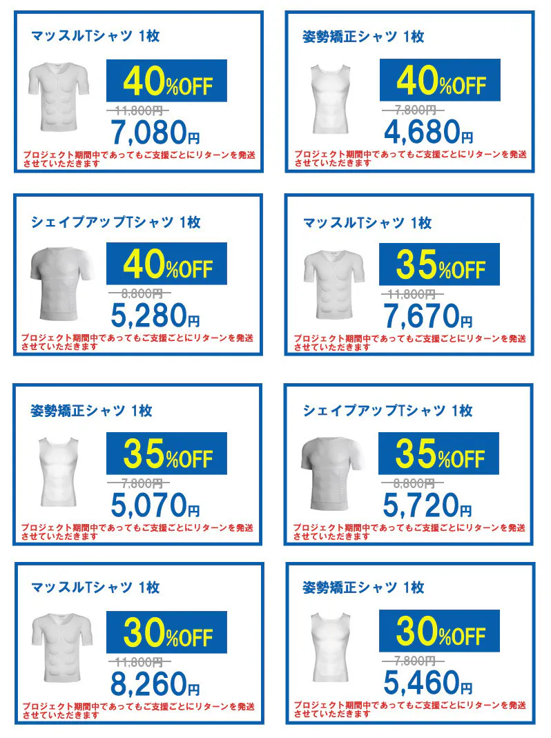 2024/09/07 10:28このたびはご支援とお気に入りとご興味をいただきましてありがとうございます。プロジェクト期間が残り1日を切りました。付加価値シャツにご関心をお持ちの方は、プロジェクトが過ぎてしまうとこのご支援額でご支援いただけなくなりますので、この機会をお見逃しなくこのプロジェクトが終了する前にご支援を賜りましたら幸いです。よろしくお願い申し上げます。 株式会社フェリクス もっと見るプロジェクト期間が残り2日を切りました