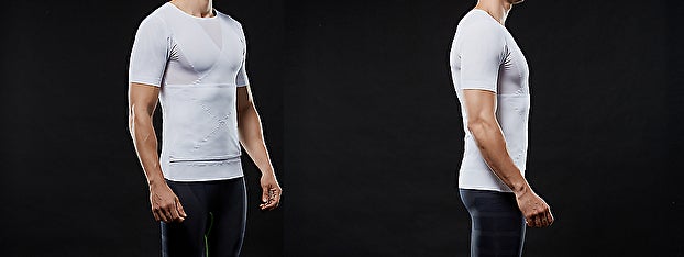 このTシャツは背中にポスチャーサポーター機能を組み込むことで、無理なく正しい姿勢を保つことができます。