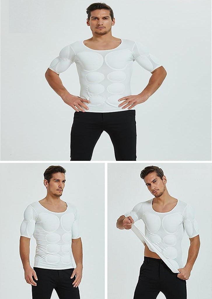 自然な筋肉ライン肩・胸・腹の部分に入れられたパッドが、自然な筋肉のラインを演出します。