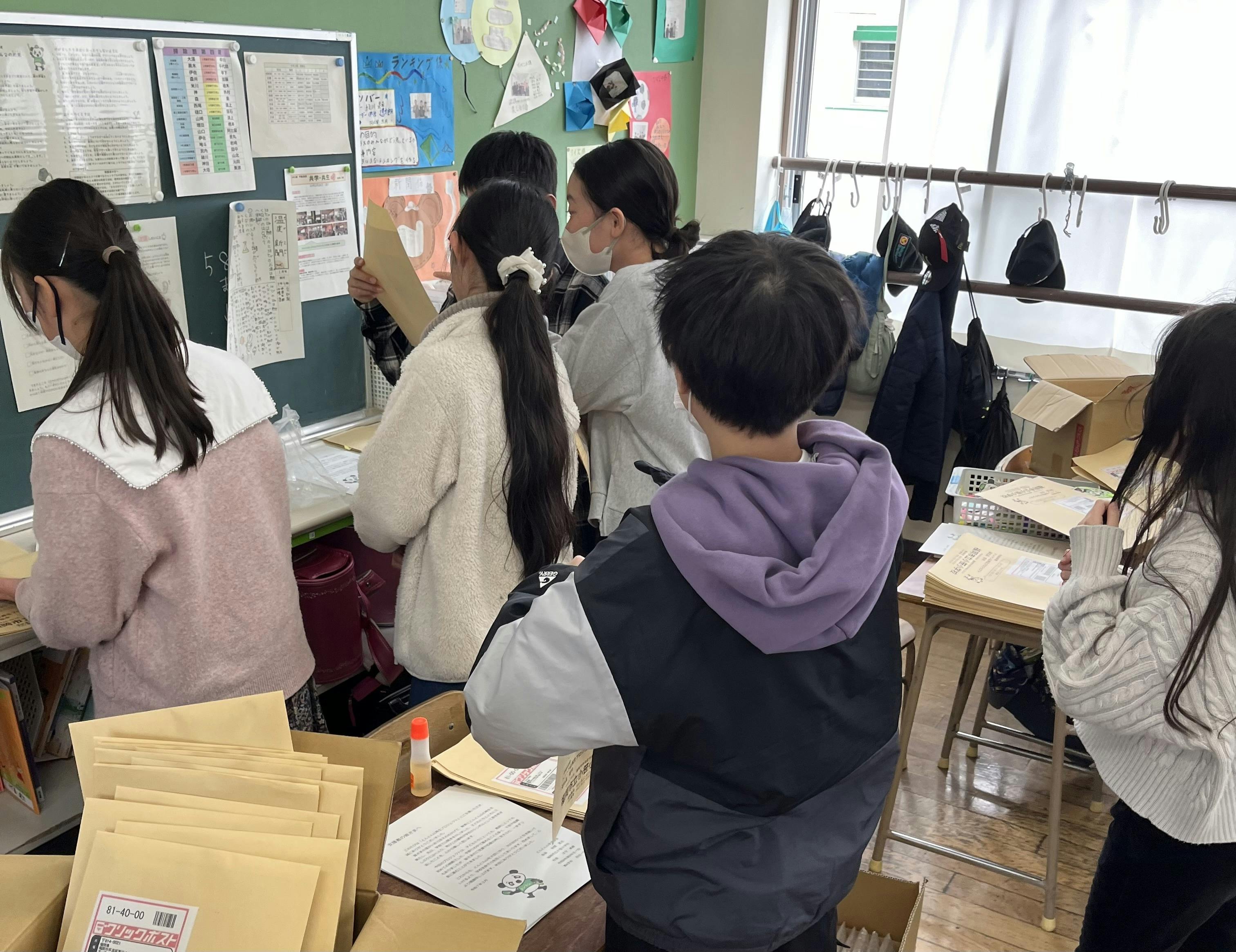 本日、返礼品の郵送が完了しました。たくさんの封筒の数に、子どもたちも驚いていました。封入作業は子どもたちと一緒に行いました。内容品を確認しながら丁寧な作業。途中で分業して作業を進めようとアイデアを出していました。