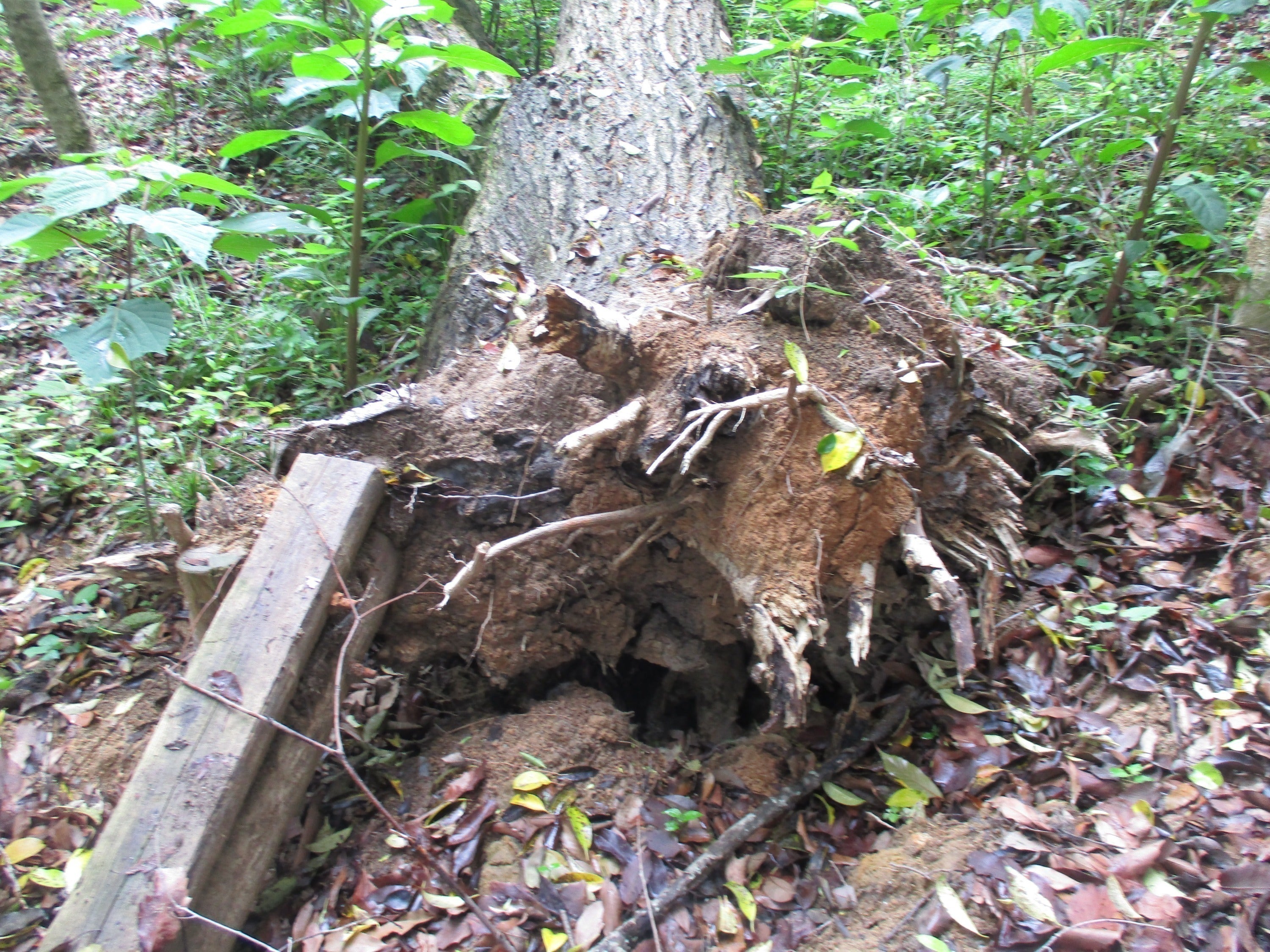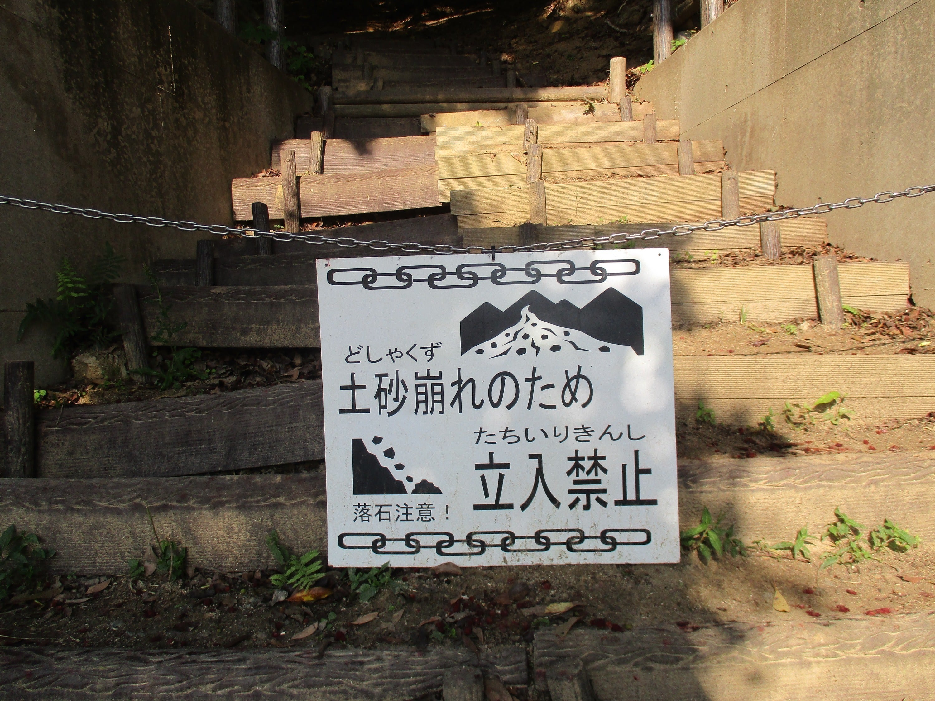 土砂崩れで山の斜面がとても急になり、さらに階段も壊れてしまいました。今は、山頂に登ることがとても難しい状態です。