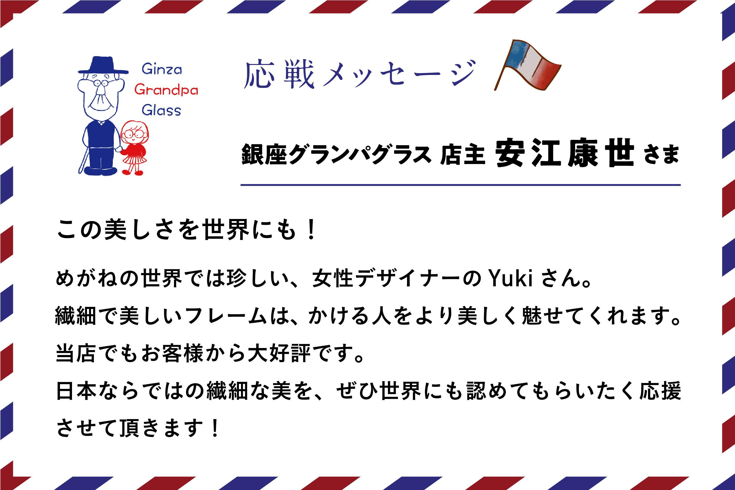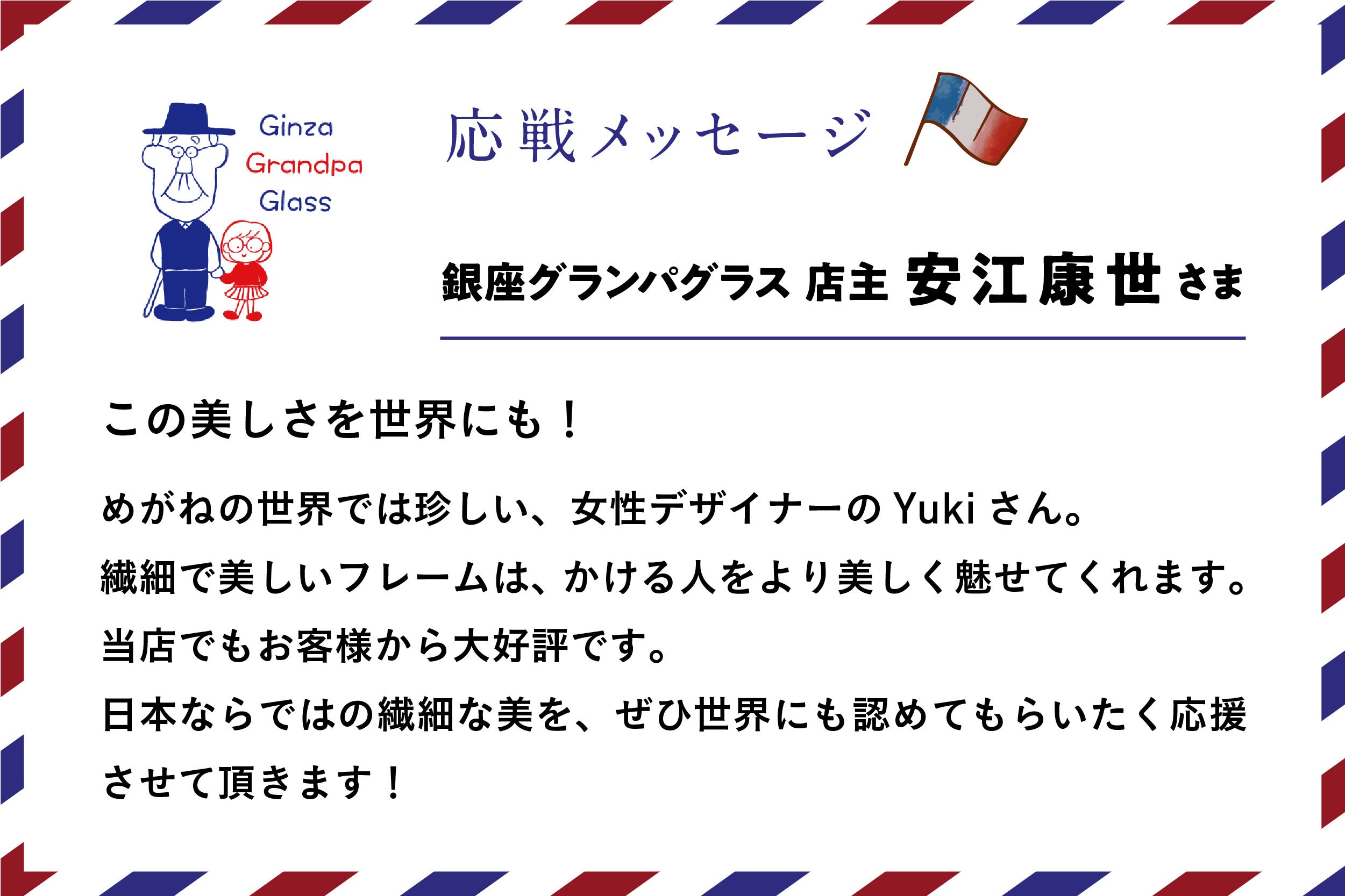 銀座グランパグラス 店主の安江さまから応援メッセージを頂きました!
