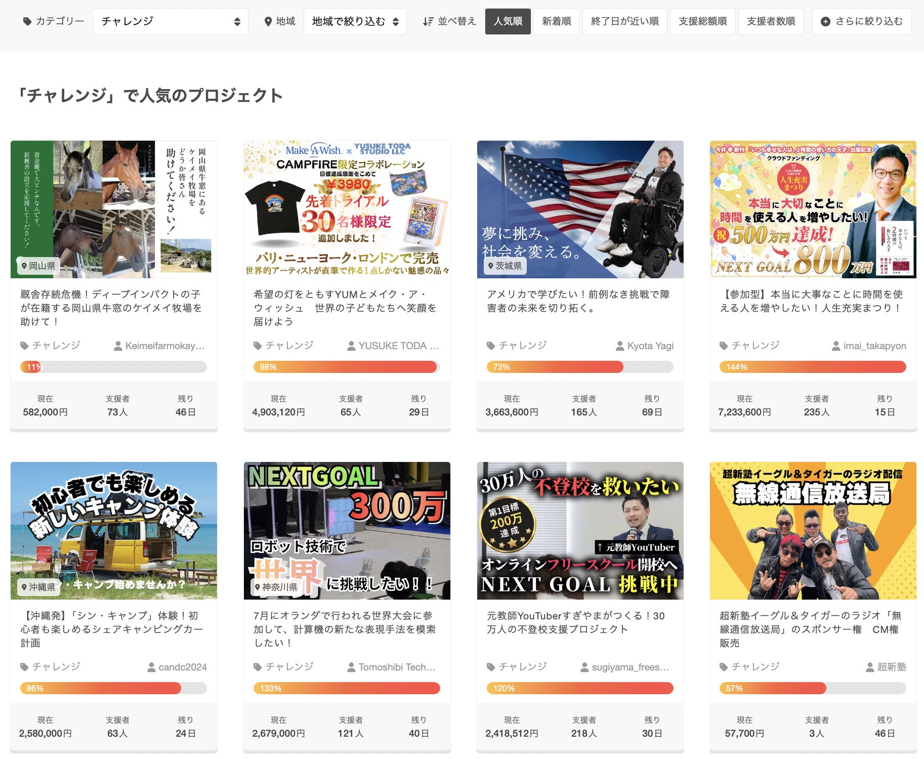 ・キャンプファイヤーのカテゴリー『チャレンジ』ランキングで1位に!