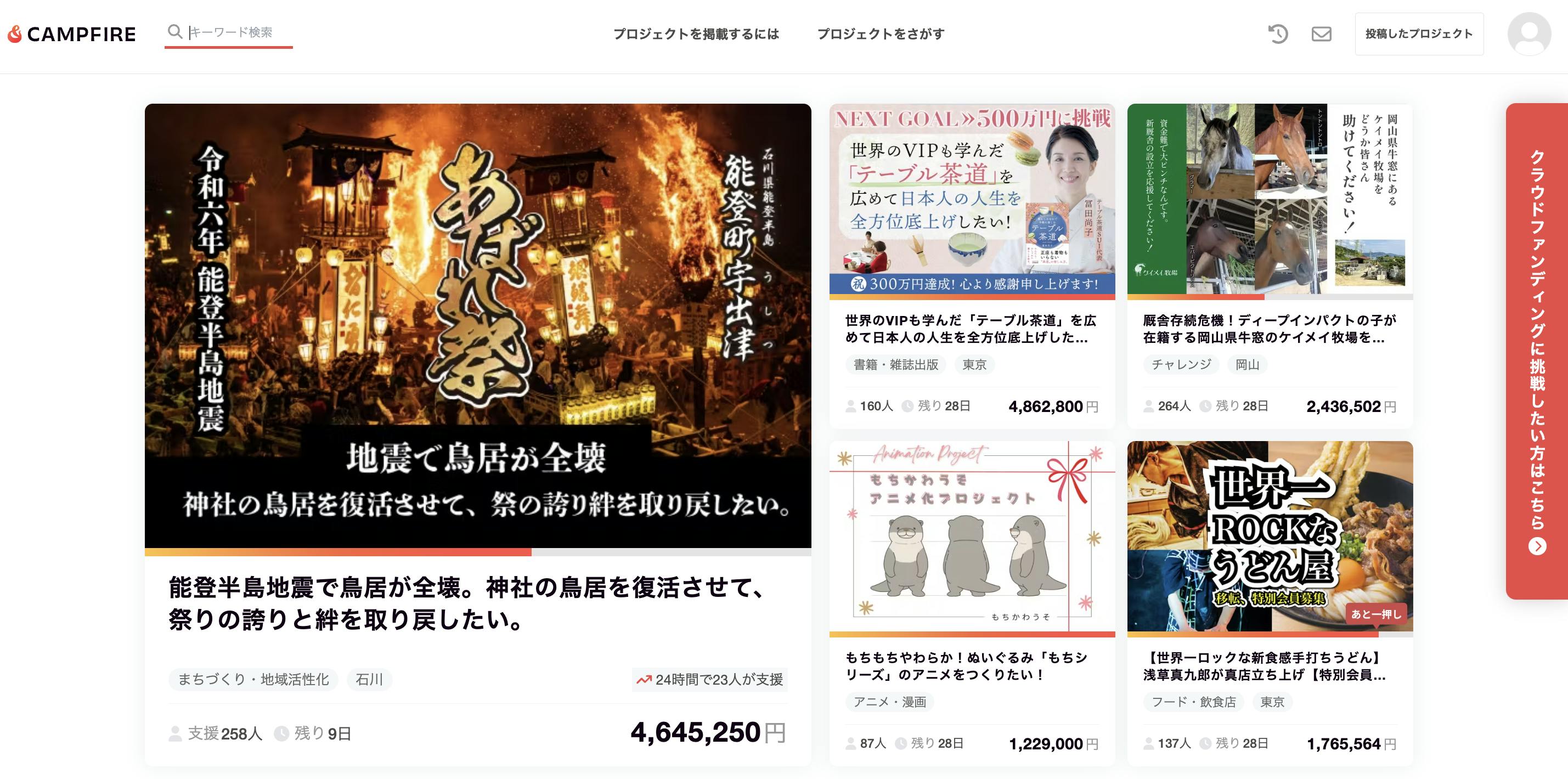 今日、CAMPFIREのTOPページにケイメイ牧場が出ました!