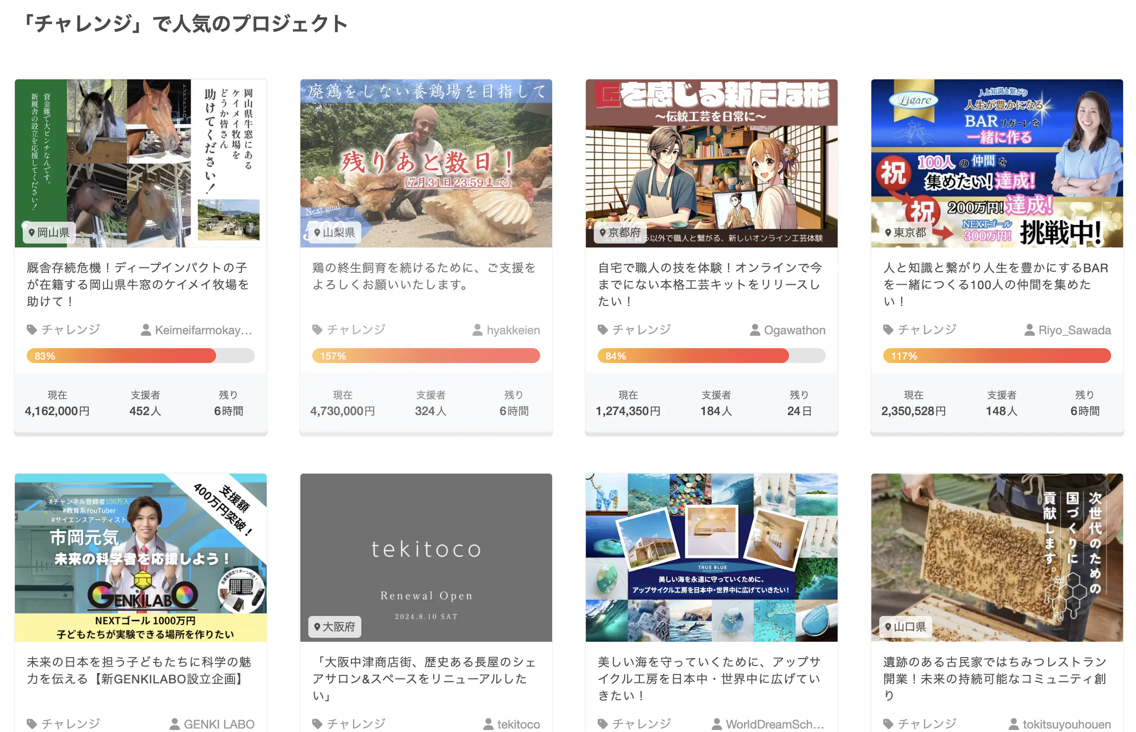 支援者数524人
