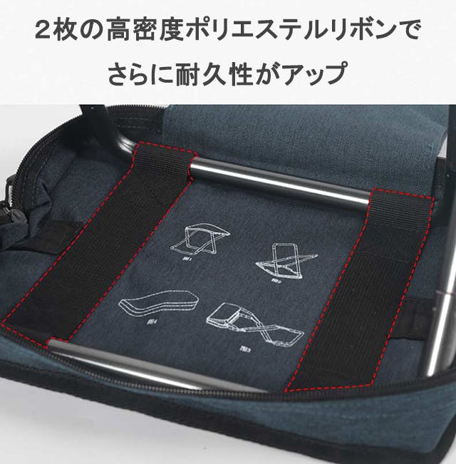 軽量性を確保する上でやや太いアルミ合金ポール使用し、X字に組み合わせたことで後ろに転倒しにくく、頑丈さもバッチリです。