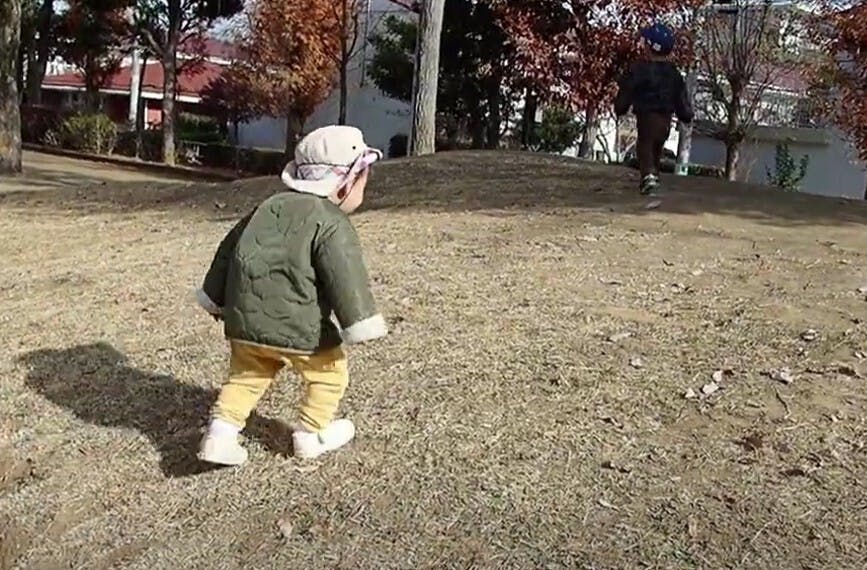 〇公園の小さな丘も小走りで降りられるように