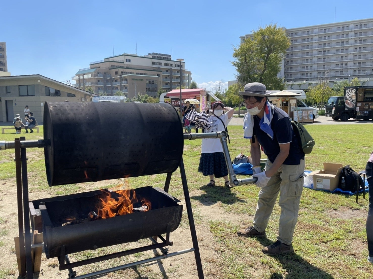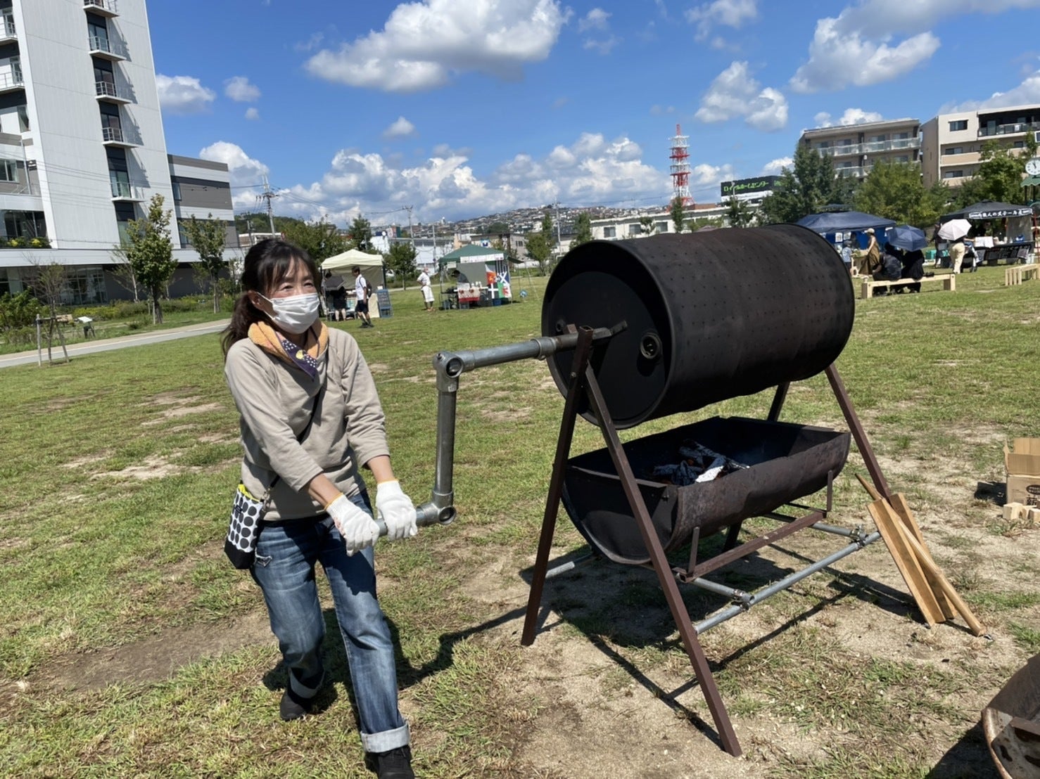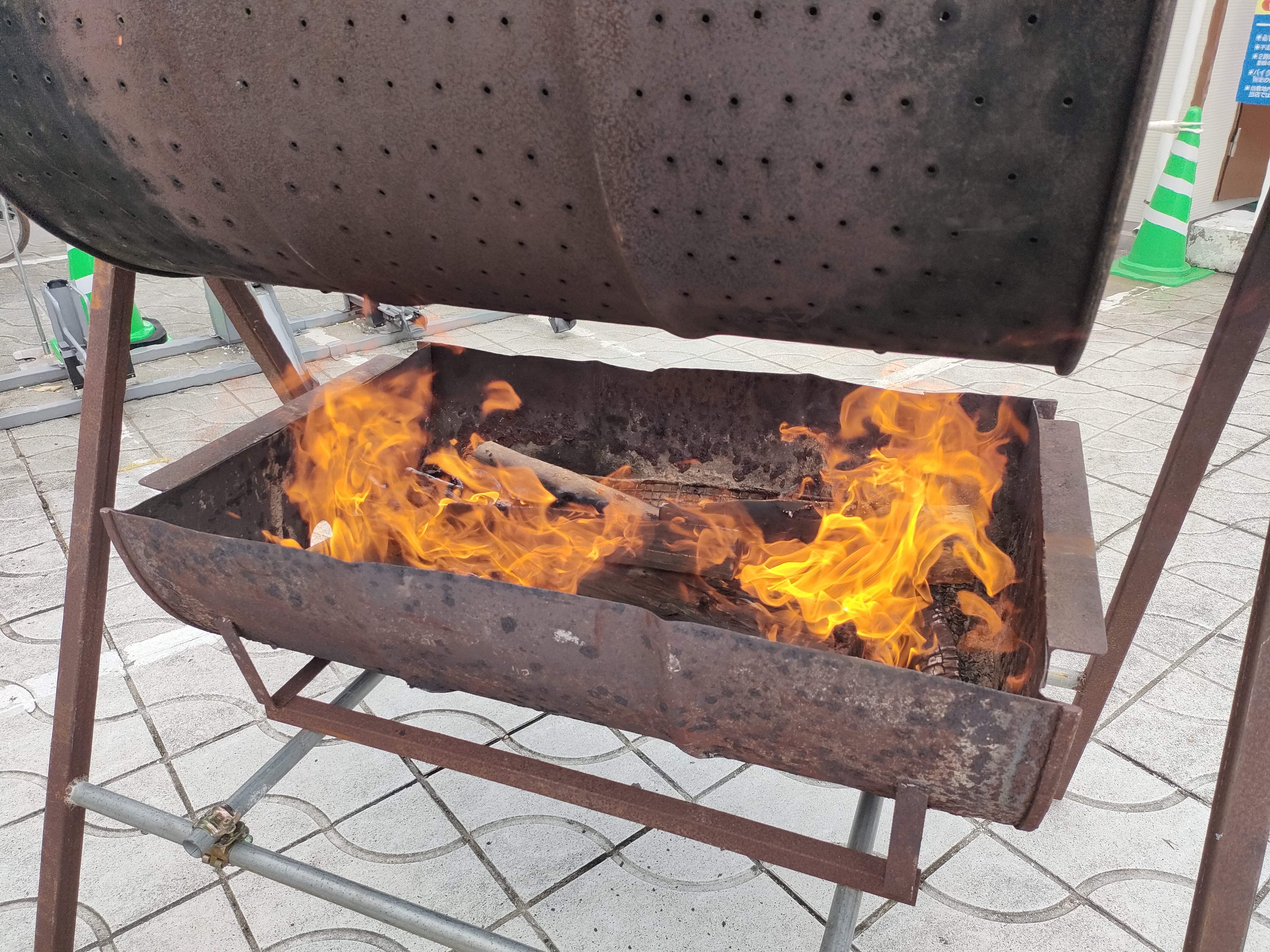 ドラム缶焙煎修了式でのひとこま(宝塚)
