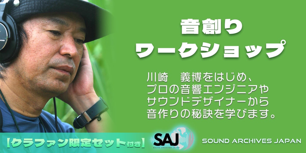 「川崎 義博 音創りワークショップ」では、実際に音の録音をする方法や、作品制作の手法について川崎 義博をはじめ、プロとして活躍するサウンドデザイナーや音響ミキサーなどを交えて、実際の音作りの秘訣など、直接レクチャーを受けることができます。こちらも、50名様限定になります。