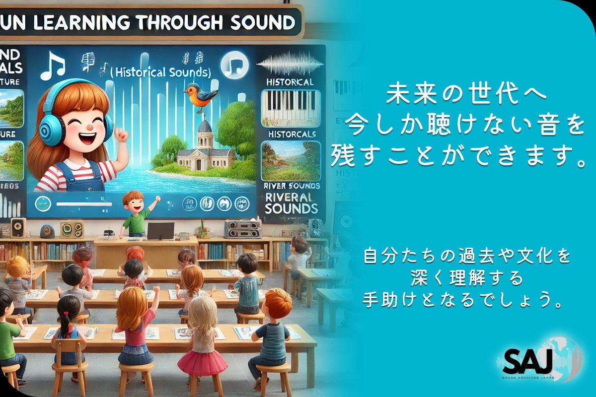 想像してみてください。教室の中で、子どもたちが仲間たちと一緒に、自然の音や歴史的な音を聴きながら楽しく学んでいる場面を。画面には、鳥のさえずりや川のせせらぎが映し出され、先生がその音がどんな環境で録音されたのかを想像力を働かせて説明してくれます。音源を使ったクイズやゲームが進行し、子どもたちは音の秘密を解き明かす探検家のような気分に。教室の中は、リアルな映像と共に、心地いい音楽が流れ、自然のイラストが飾られ、学ぶことがワクワクする冒険の場所になっています。このサウンドアーカイブが実現すれば、音を通じて学ぶ楽しさが、子どもたちの学びをより具体的でリアルなものにしてくれるでしょう。