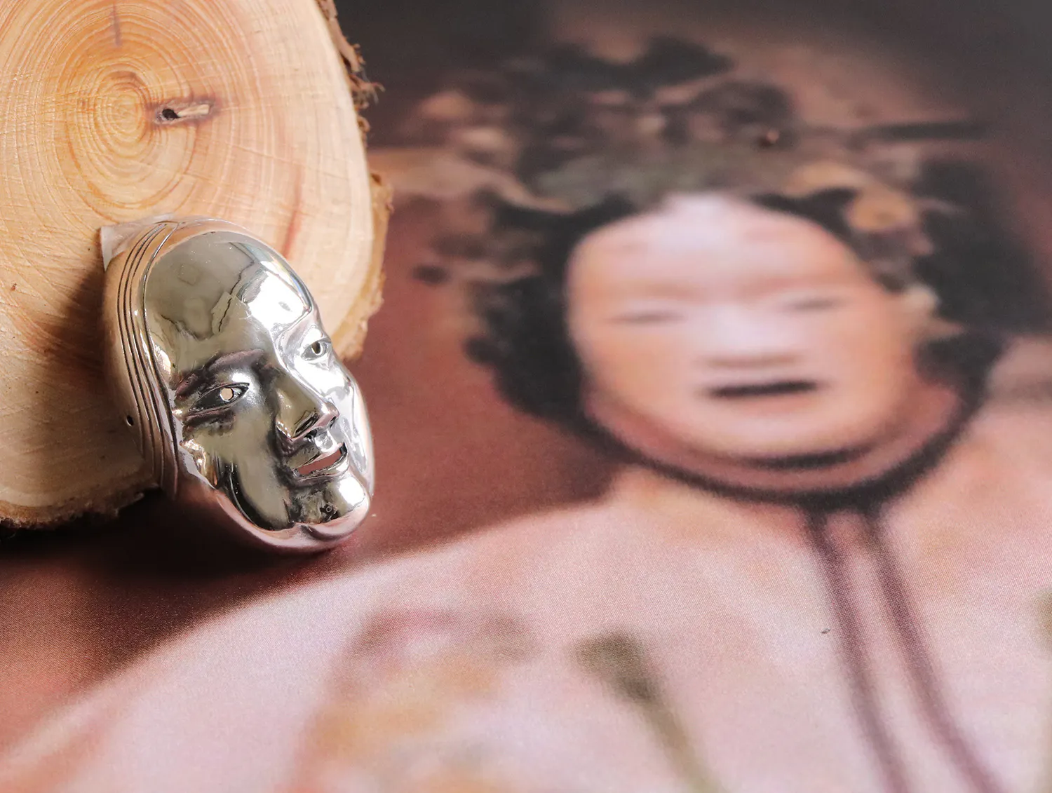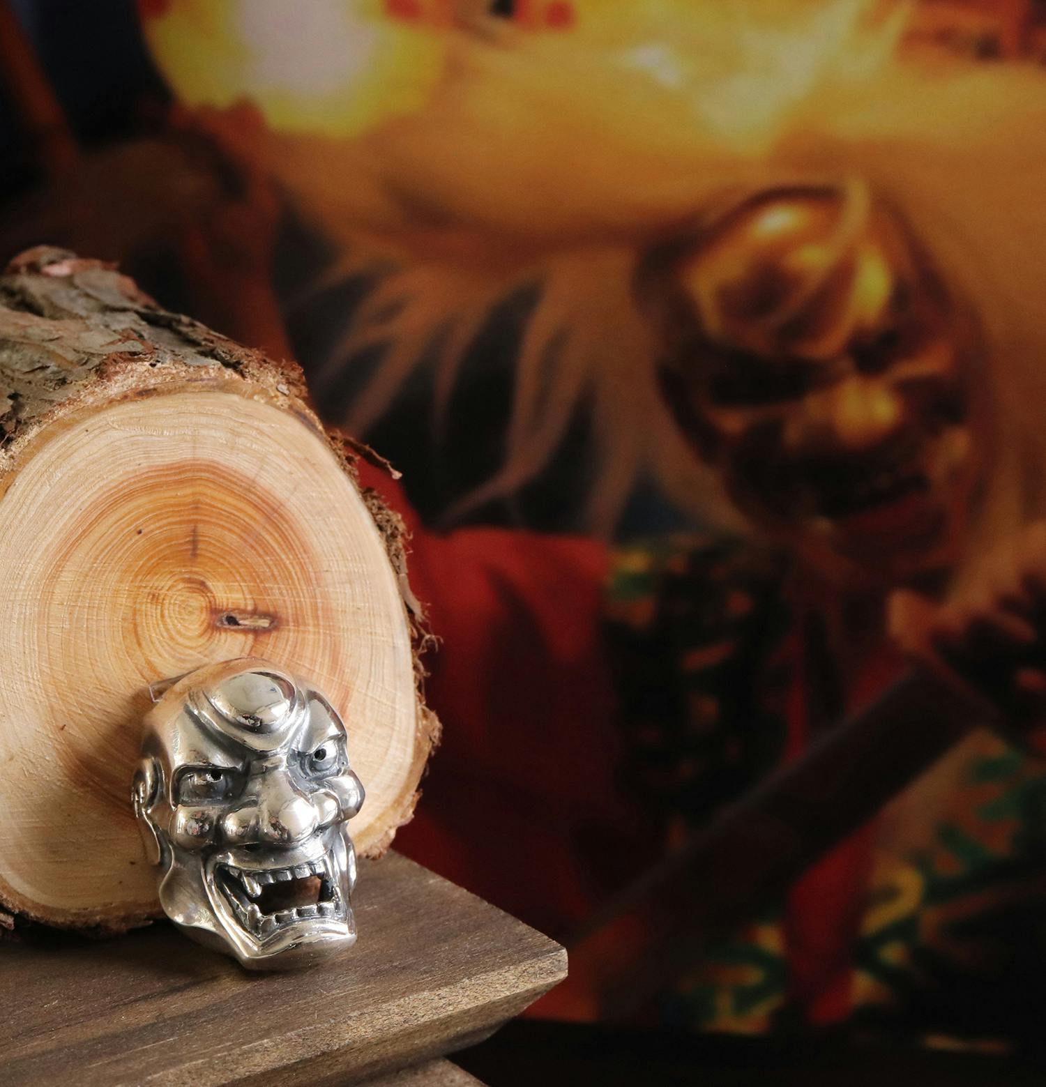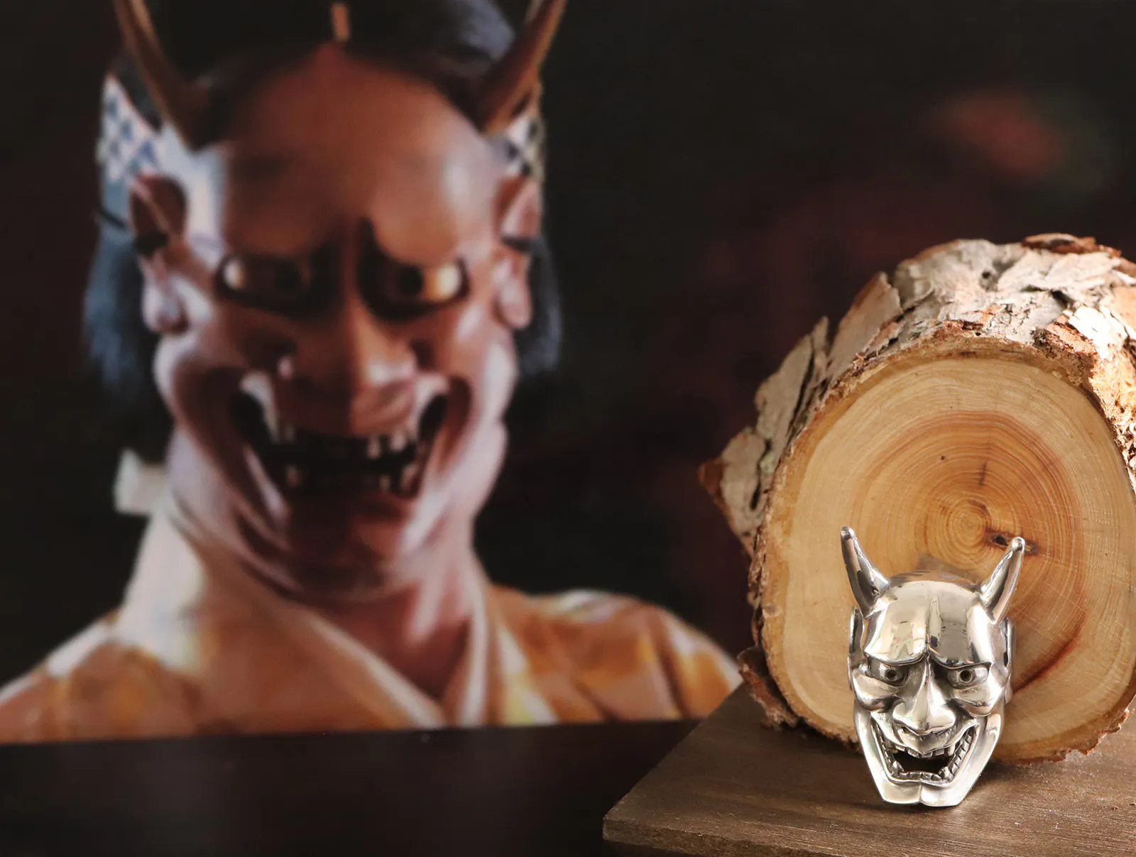 プロジェクトでは、日本芸能の「能楽」「神楽」に使われるお面をモチーフにした、いぶし銀の根付(ストラップ)8種類をご案内いたします。