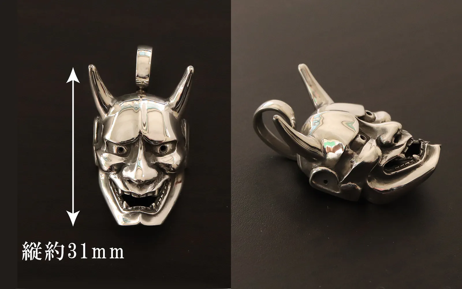 女の鬼を表現した般若の面には口の上下からキバが2本ずつ、額からツノが2本生えています。目を見開いて眉間にシワを寄せた嫉妬や恨みのこもる表情は、見るものを圧倒する恐ろしさがあります。