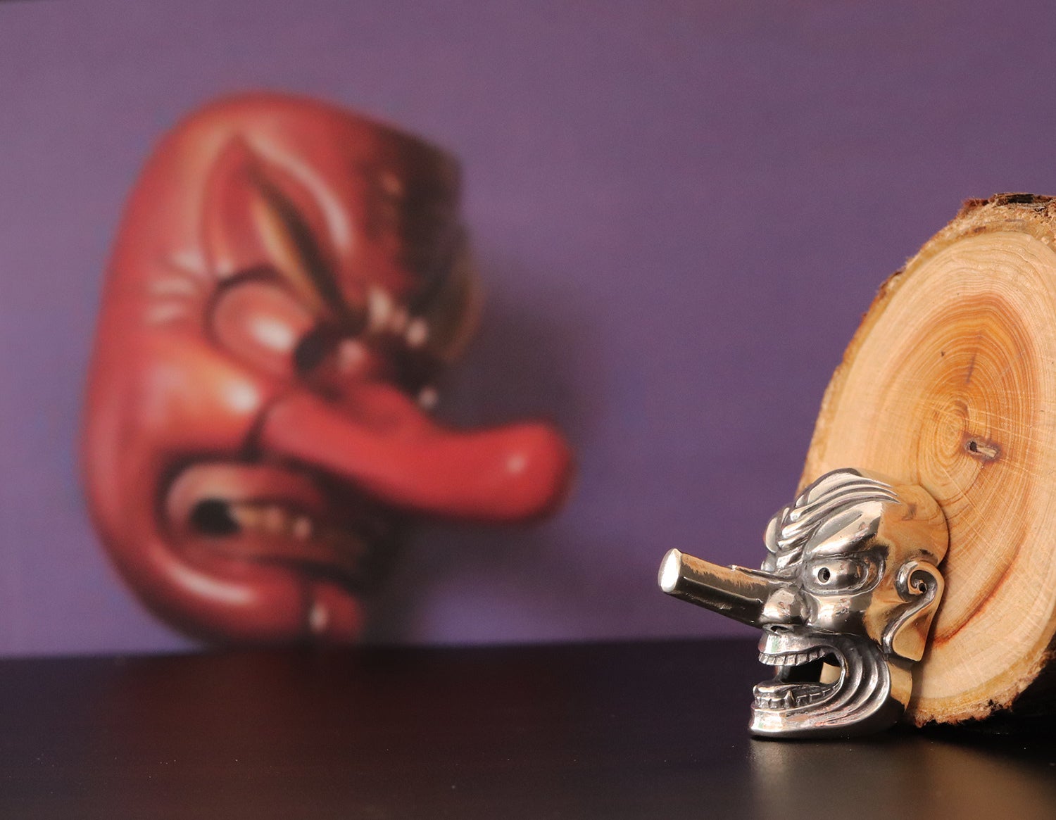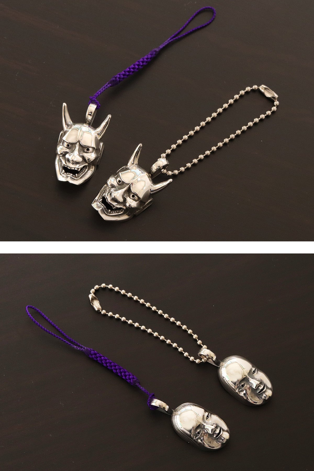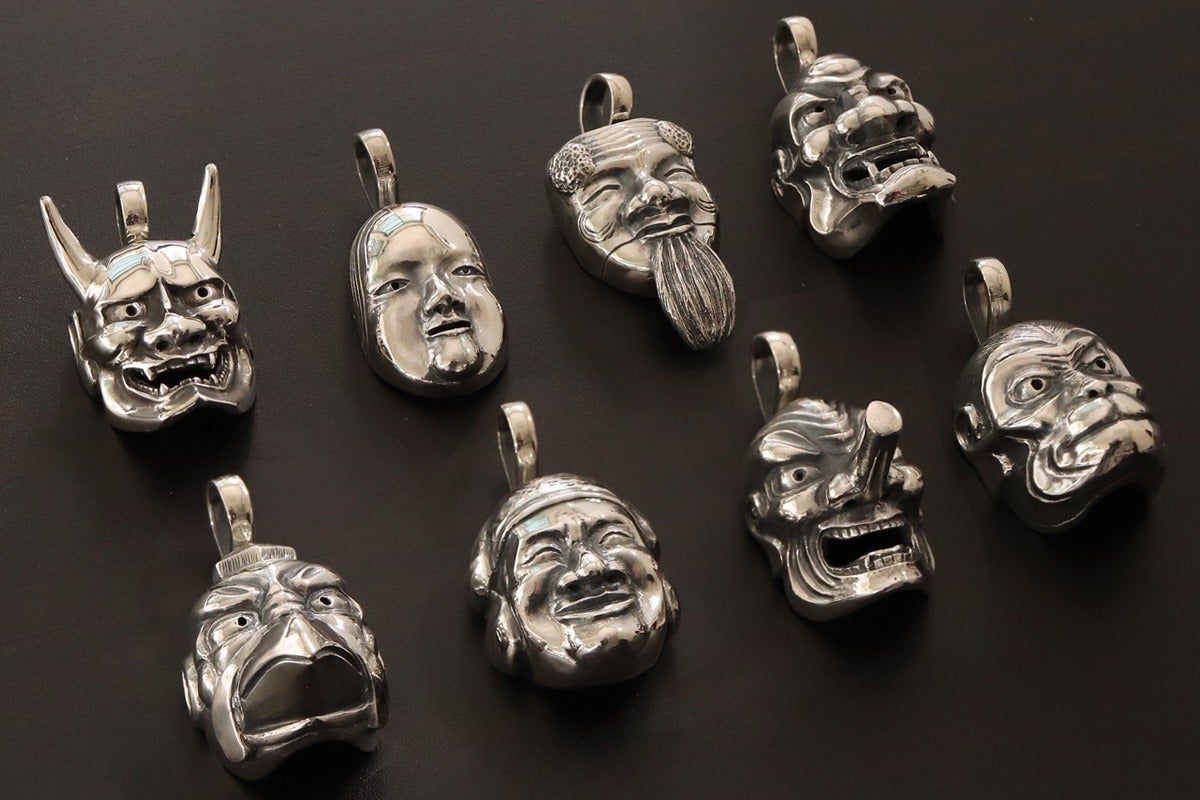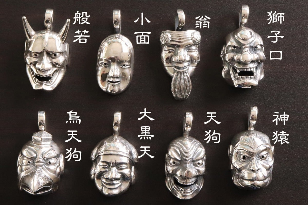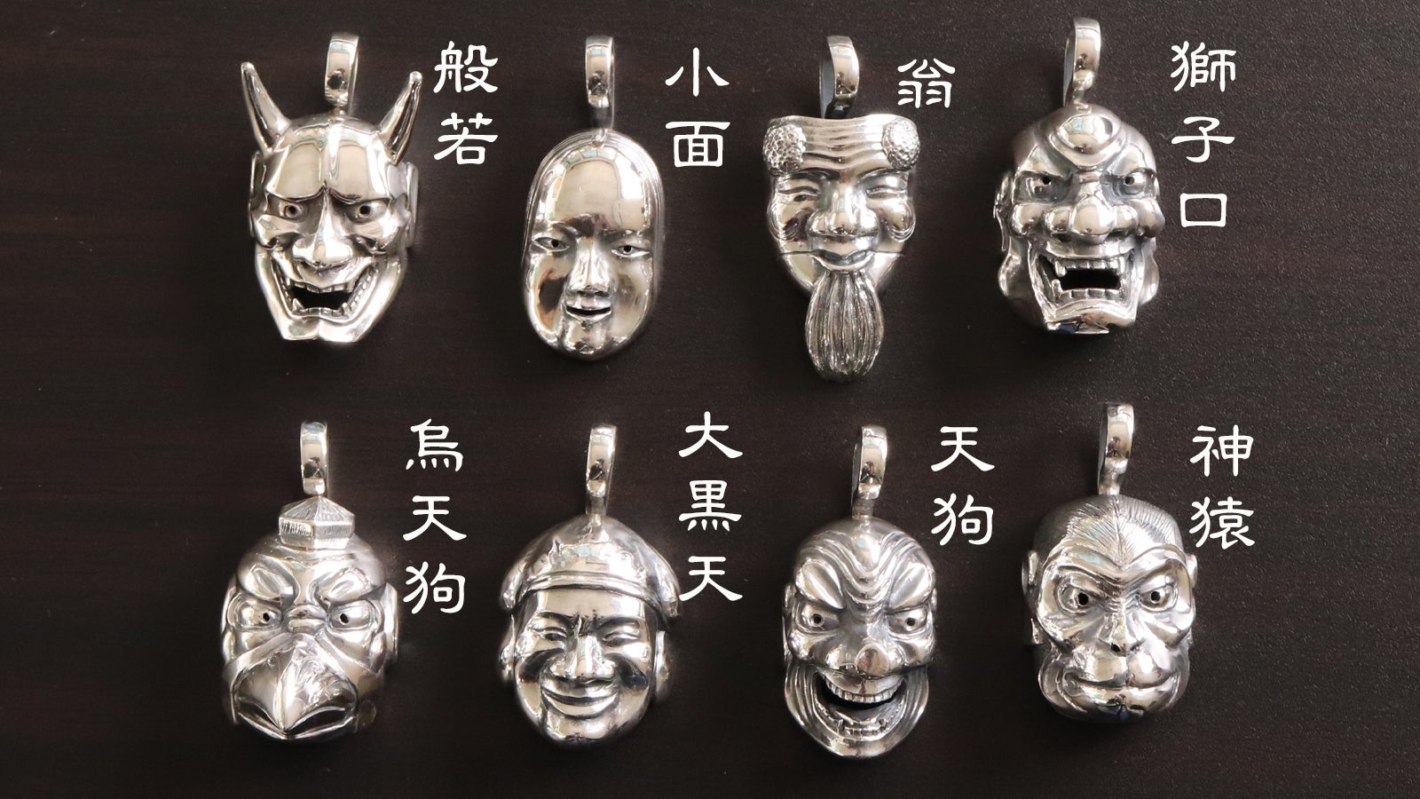 プロジェクトでは、日本芸能の「能楽」「神楽」に使われるお面をモチーフにした、いぶし銀の根付(ストラップ)8種類をご案内いたします。