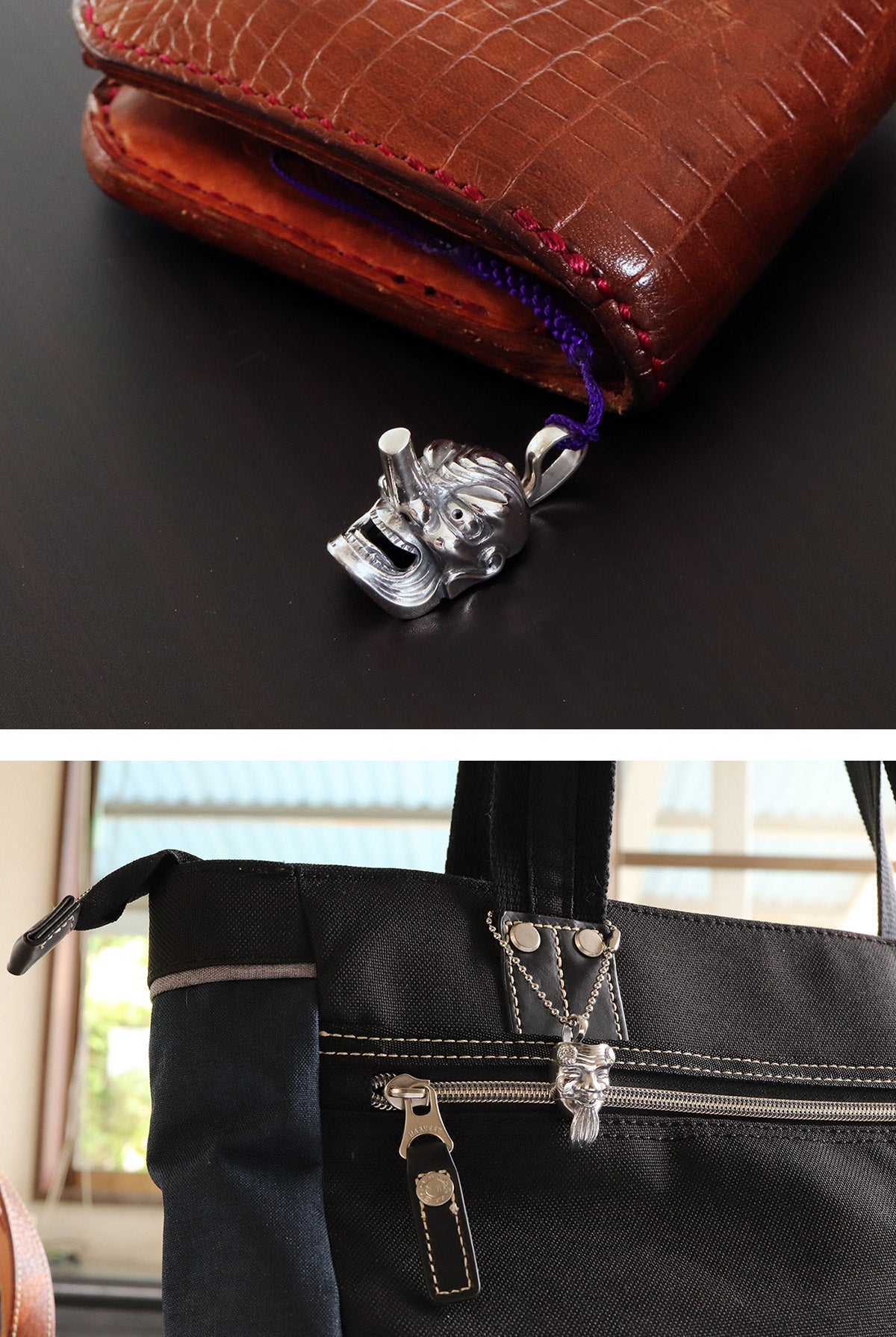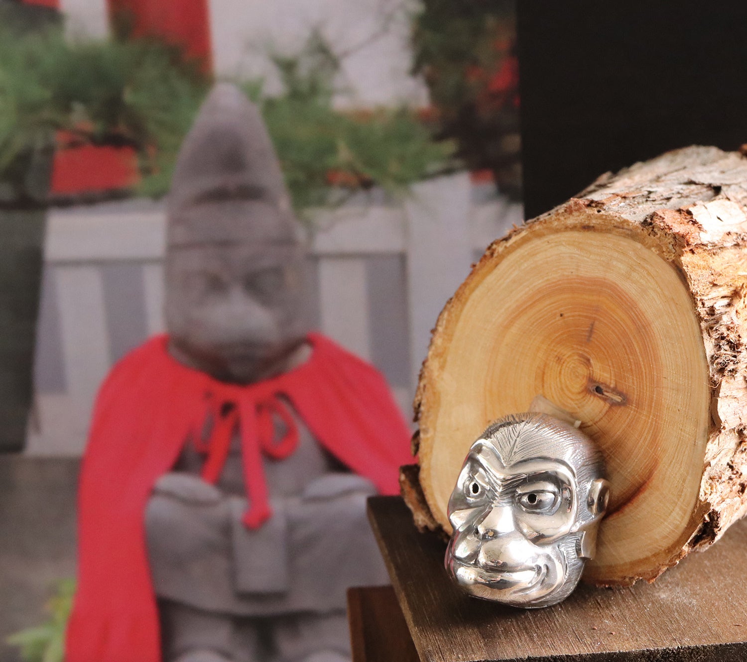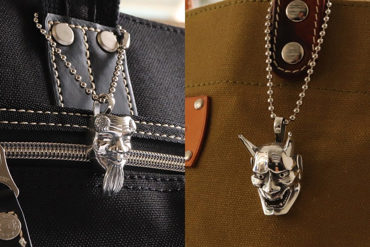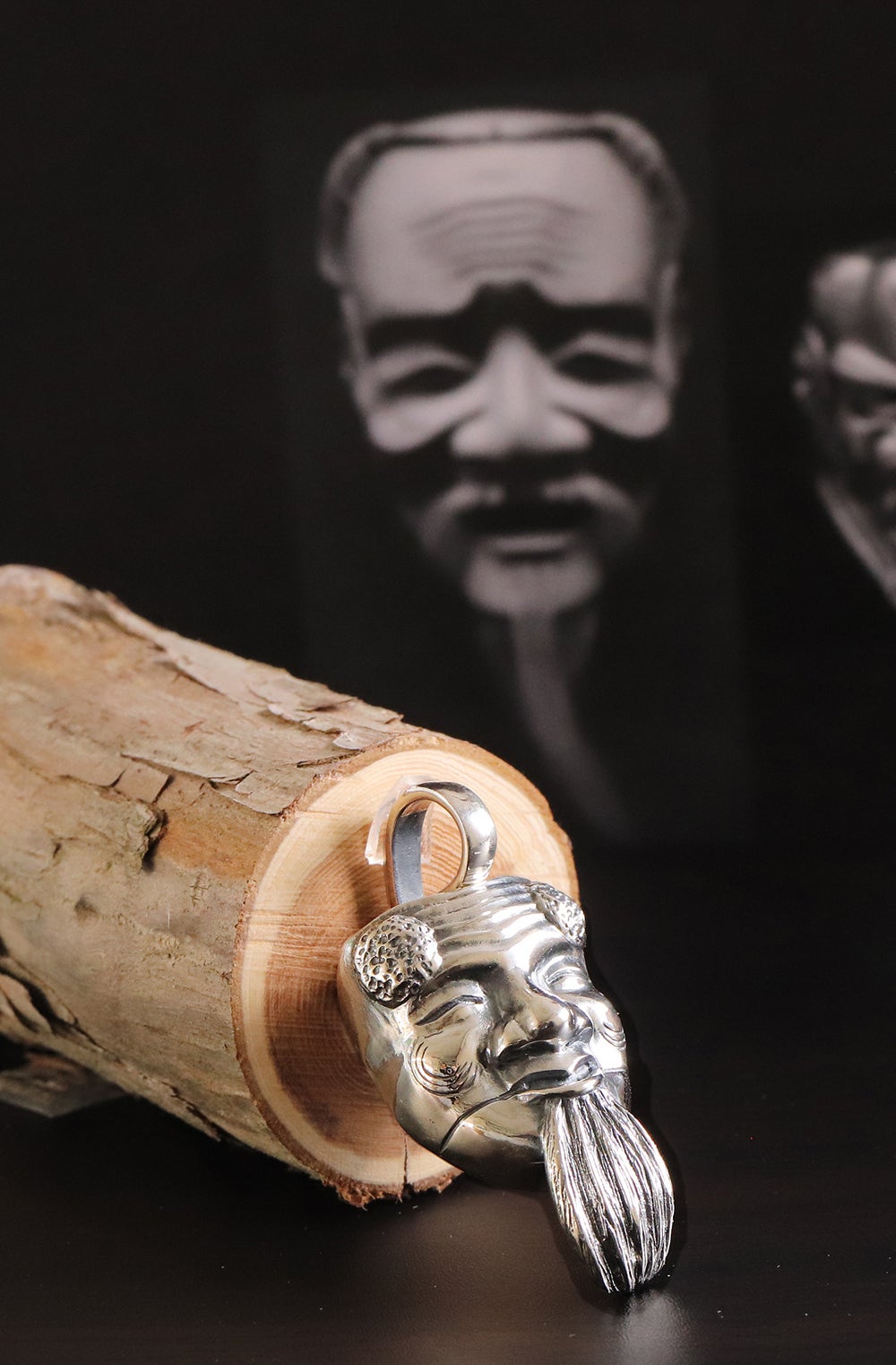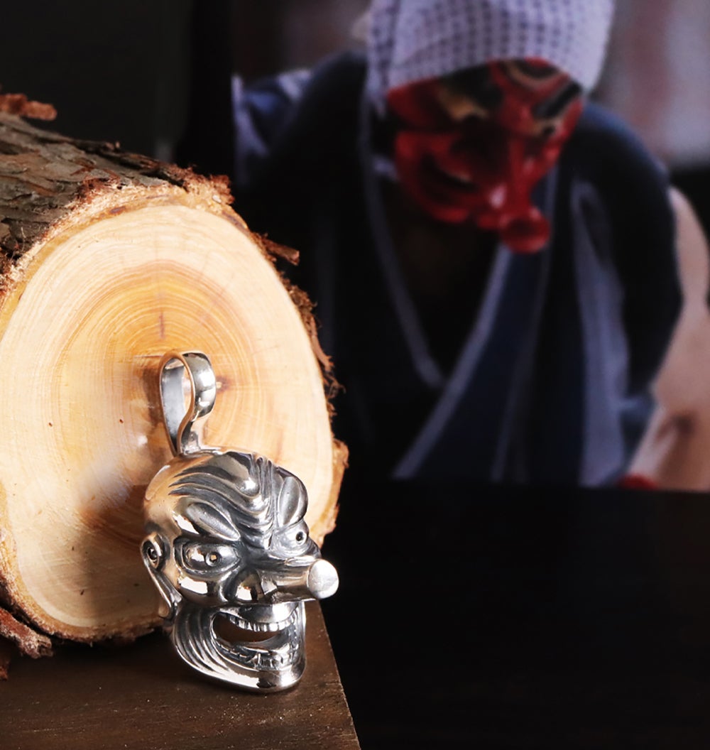 プロジェクトでは、日本芸能の「能楽」「神楽」に使われるお面をモチーフにした、いぶし銀の根付(ストラップ)8種類をご案内いたします。