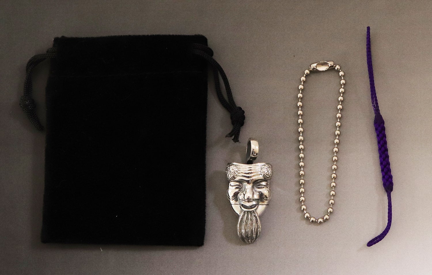 付属品は、根付紐:紫、コネクター付きチェーン、ポーチ付き
