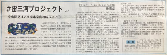 プロジェクトに企画協力いただいている、FlightPlanOriginalの代表、勝間亮さんの記事が7/4東愛知新聞の朝刊に掲載されました!