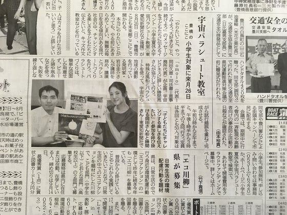 7月7日(土)の東愛知新聞と東海日日新聞の朝刊に、宇宙パラシュート教室の記事が掲載されました!