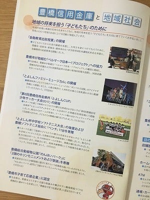 例えば小中学校への金融教育出前授業、無料で劇団四季のミュージカルが観劇できる「とよしんファミリーミュージアム」、サッカーやソフトテニスの大会の開催、のんほいパークへの寄贈などです。