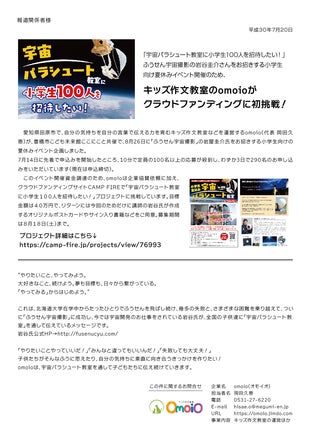 本日、豊橋市記者クラブからプレスリリースを発行いたしました。 本プロジェクトと宇宙パラシュート教室の応援、引き続きよろしくお願いいたします!