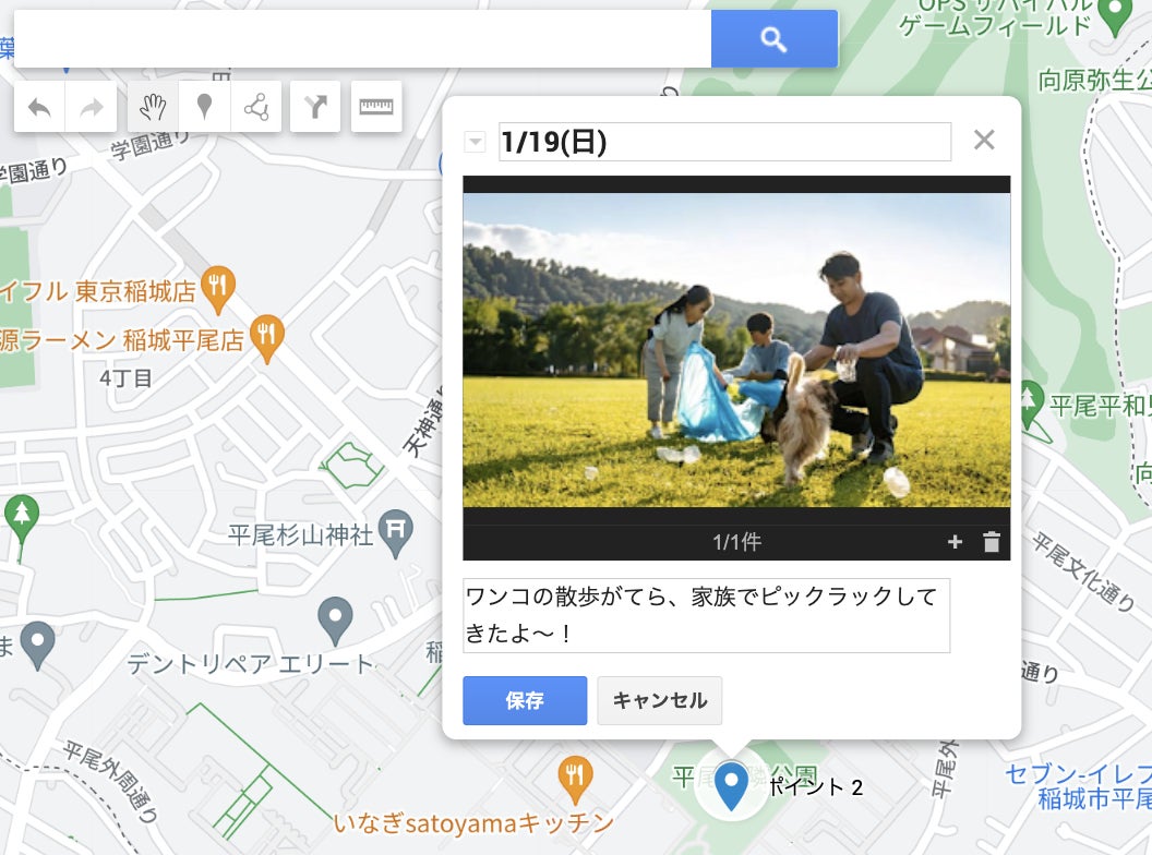 マップを開き、活動した場所にマーカーを付けて