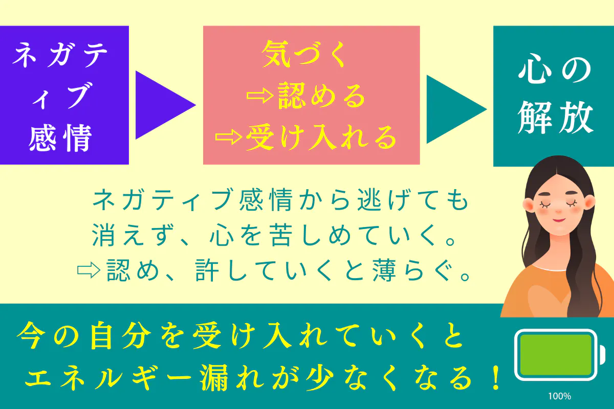 これをしばらく行っていくうちに、自分の中にネガティブなものがあってもいいという許可が出てきました。そして受け入れていくことができるようになってきたのです。