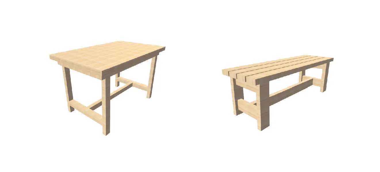 ↑屋外テーブルイメージ ↑屋外ベンチ