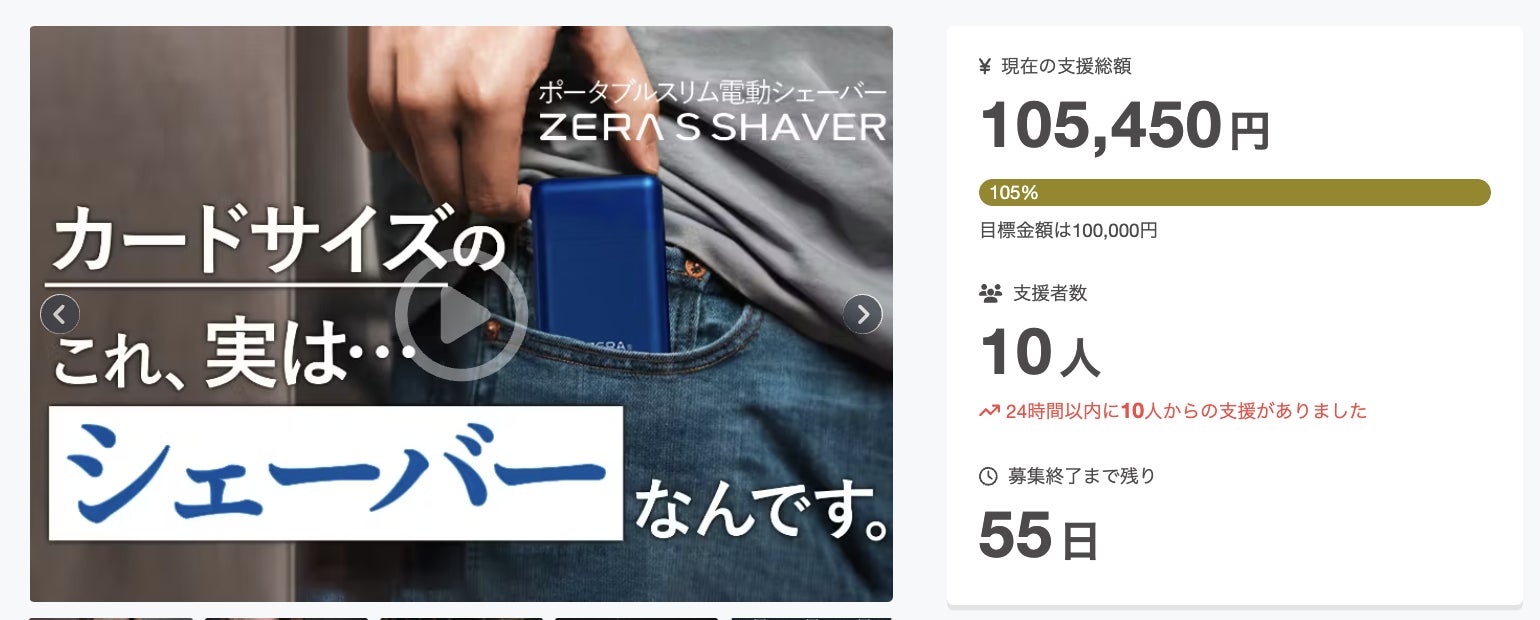 この度は「カード型でポケットにも余裕で入る!超小型電動シェーバーZERA S SHAVER」に支援頂き誠にありがとうございます!