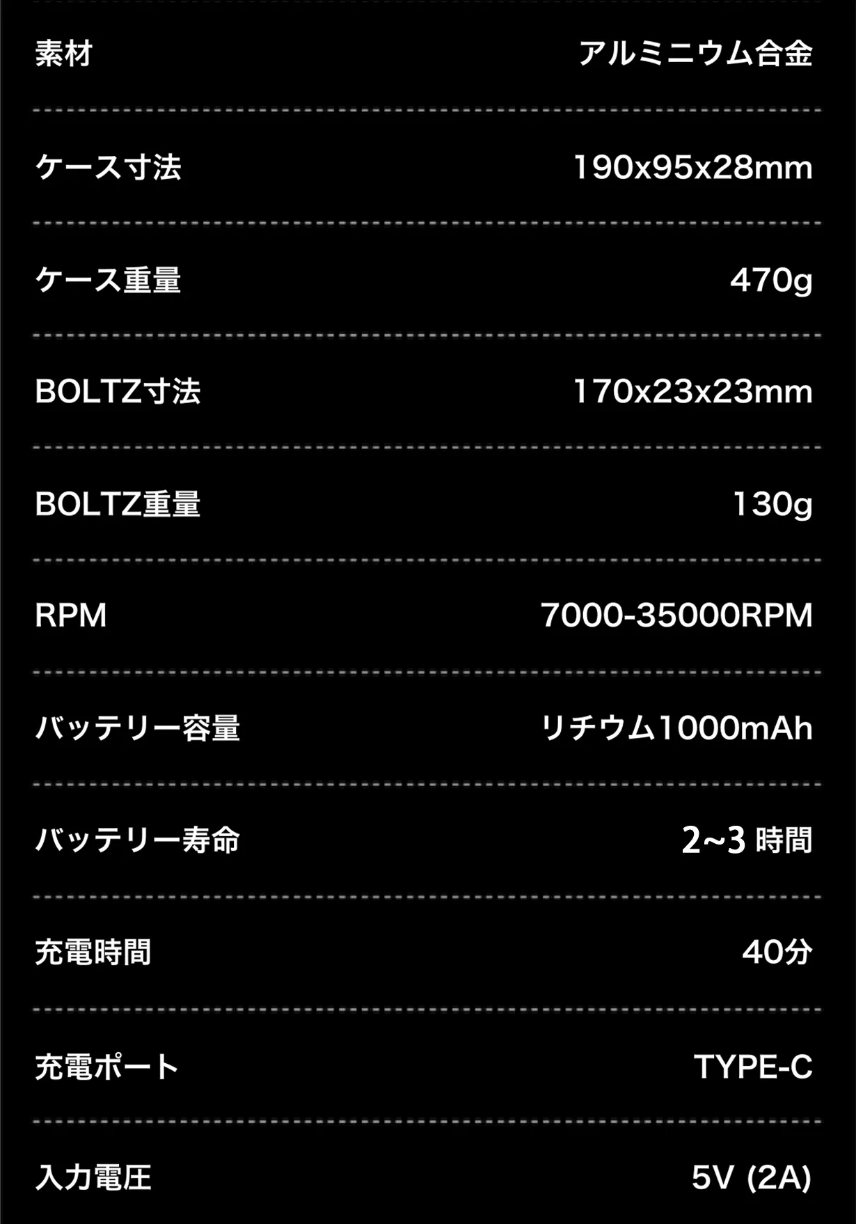 前述していますが、BOLTZは0から35000回転まで対応可能。