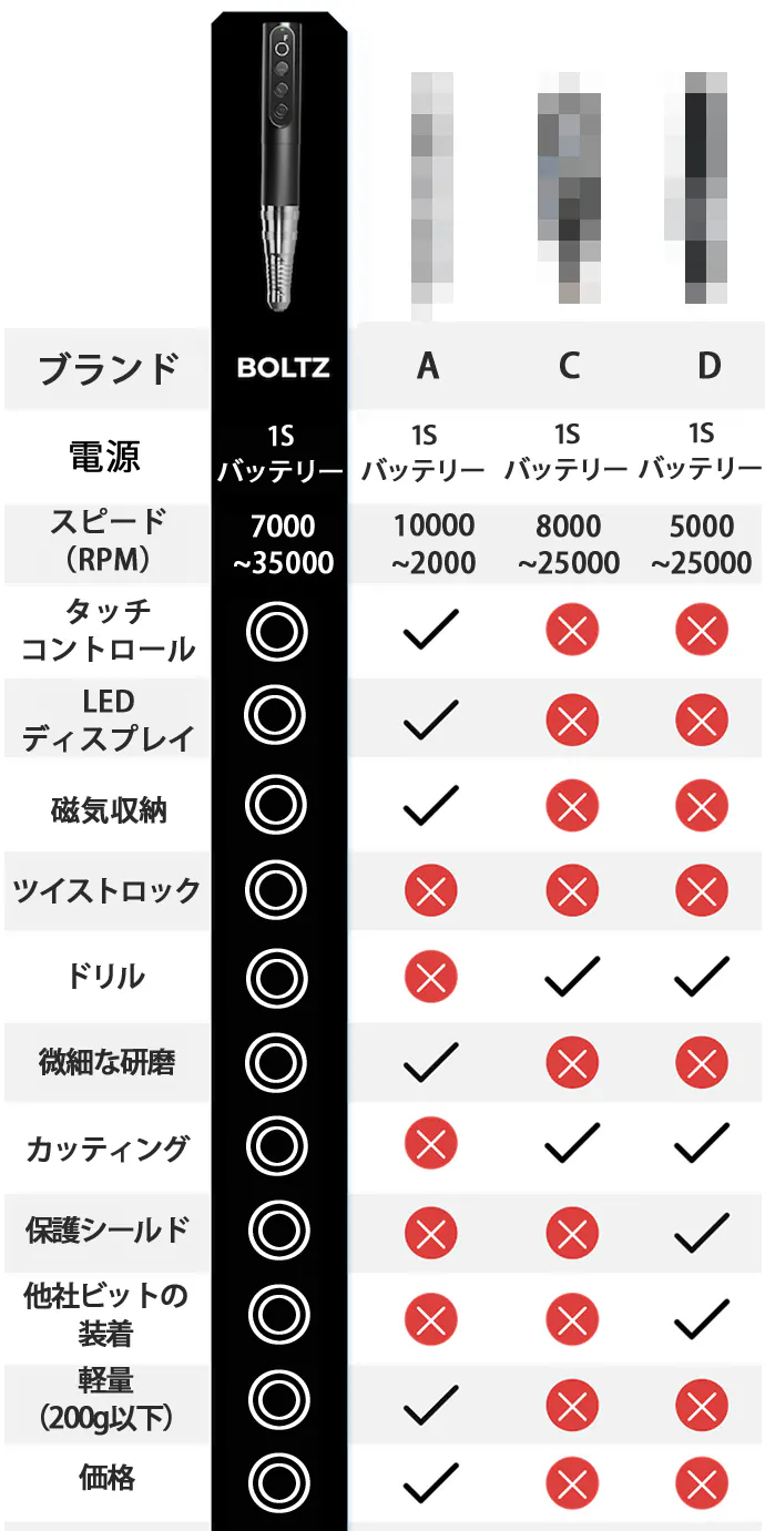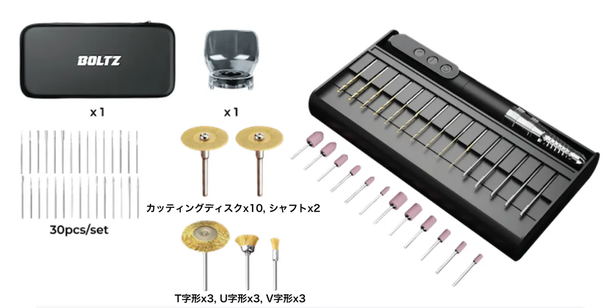 BOLTZがあれば「切る」「ドリルする」「彫る」「研磨する」がより簡単かつ快適なものになるでしょう!