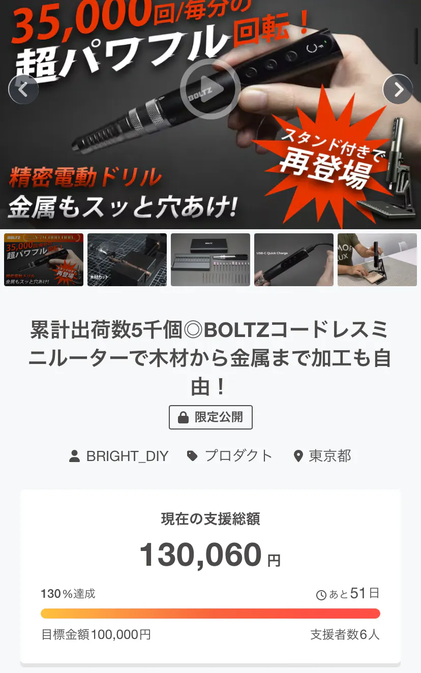 この度は「BOLTZコードレスミニルーター」に支援頂き誠にありがとうございます!