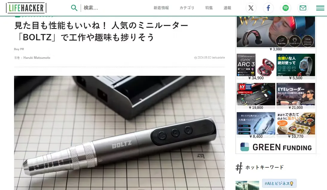5月2日、Lifehackerで「BOLTZ 」を紹介して頂きました。