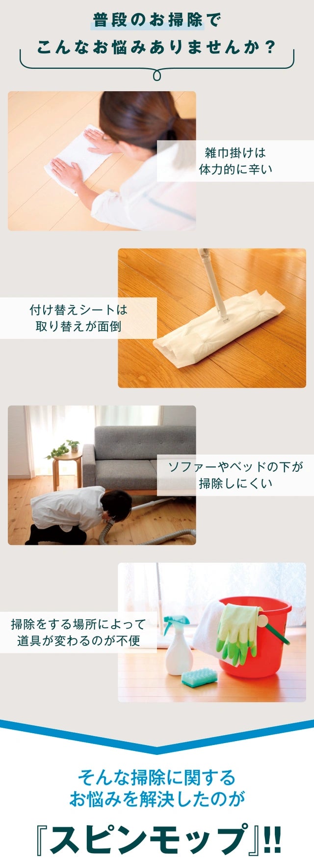 これからの掃除の常識を変える「スピンモップ」に、ぜひご注目ください。
