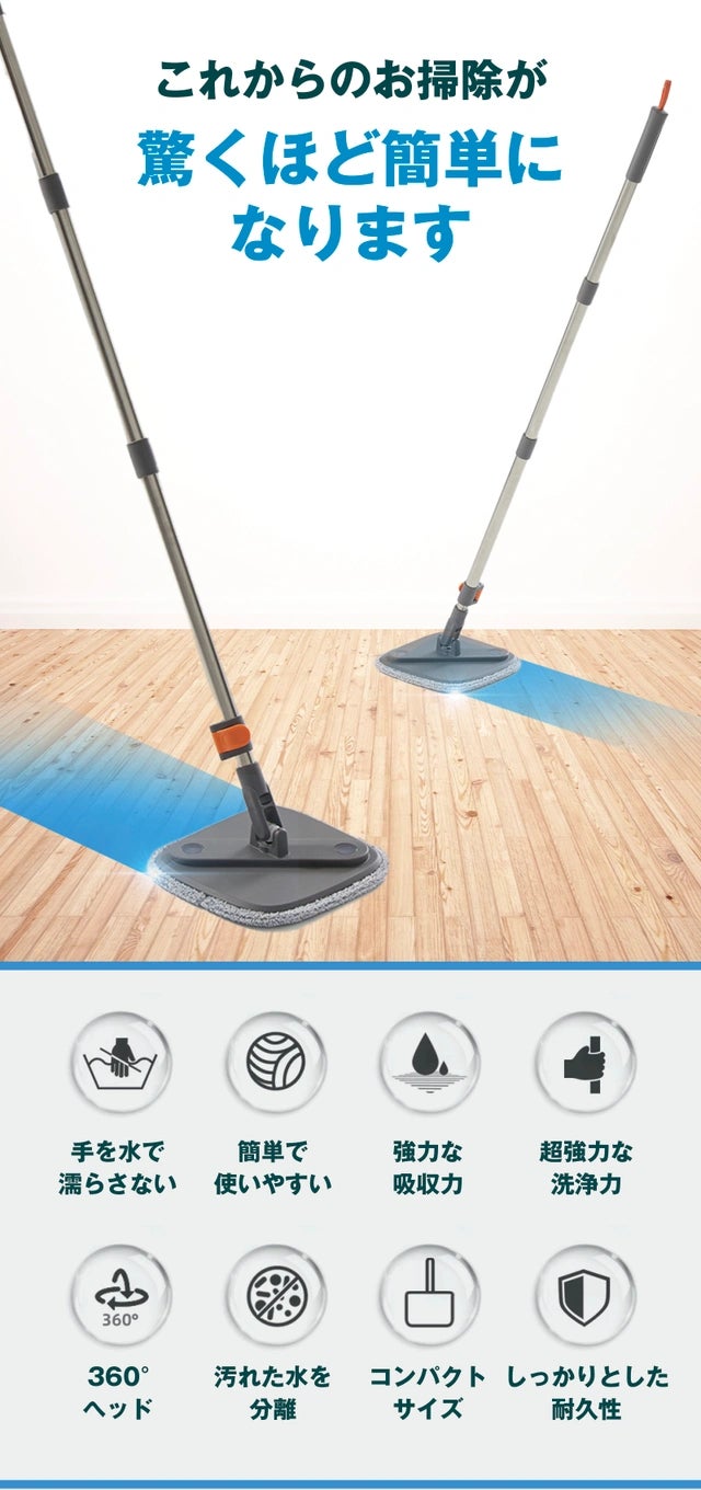 家事の中でも特に手間のかかる掃除。しかし、私たちの生活を便利にする新しい製品が登場しました!それが「スピンモップ」です!従来の掃除用ブラシと比べて効率的な掃除が可能でありながら、手軽さと使いやすさも兼ね備えています。まるで魔法のように汚れを取り除き、清潔な空間を提供します。