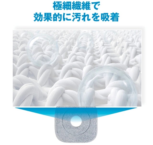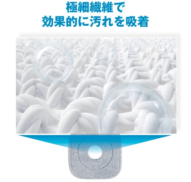 スピンモップのパッドは繊維の密度と柔軟性が優れているため、床面にピッタリとフィットし、隅々まで汚れを取り除きます。その吸着力は驚くほど高く、一度通すだけで床面をクリーンにすることができます。