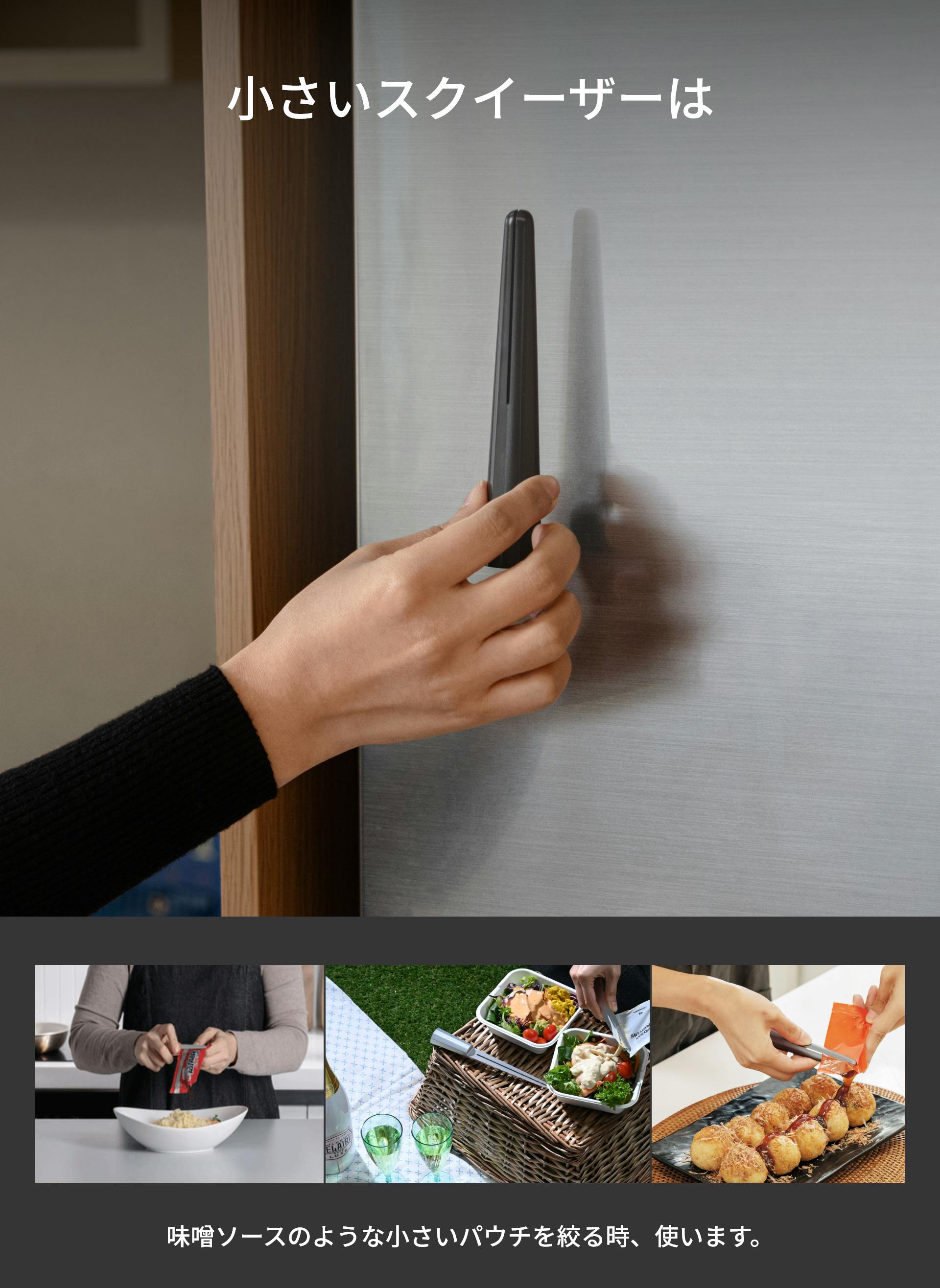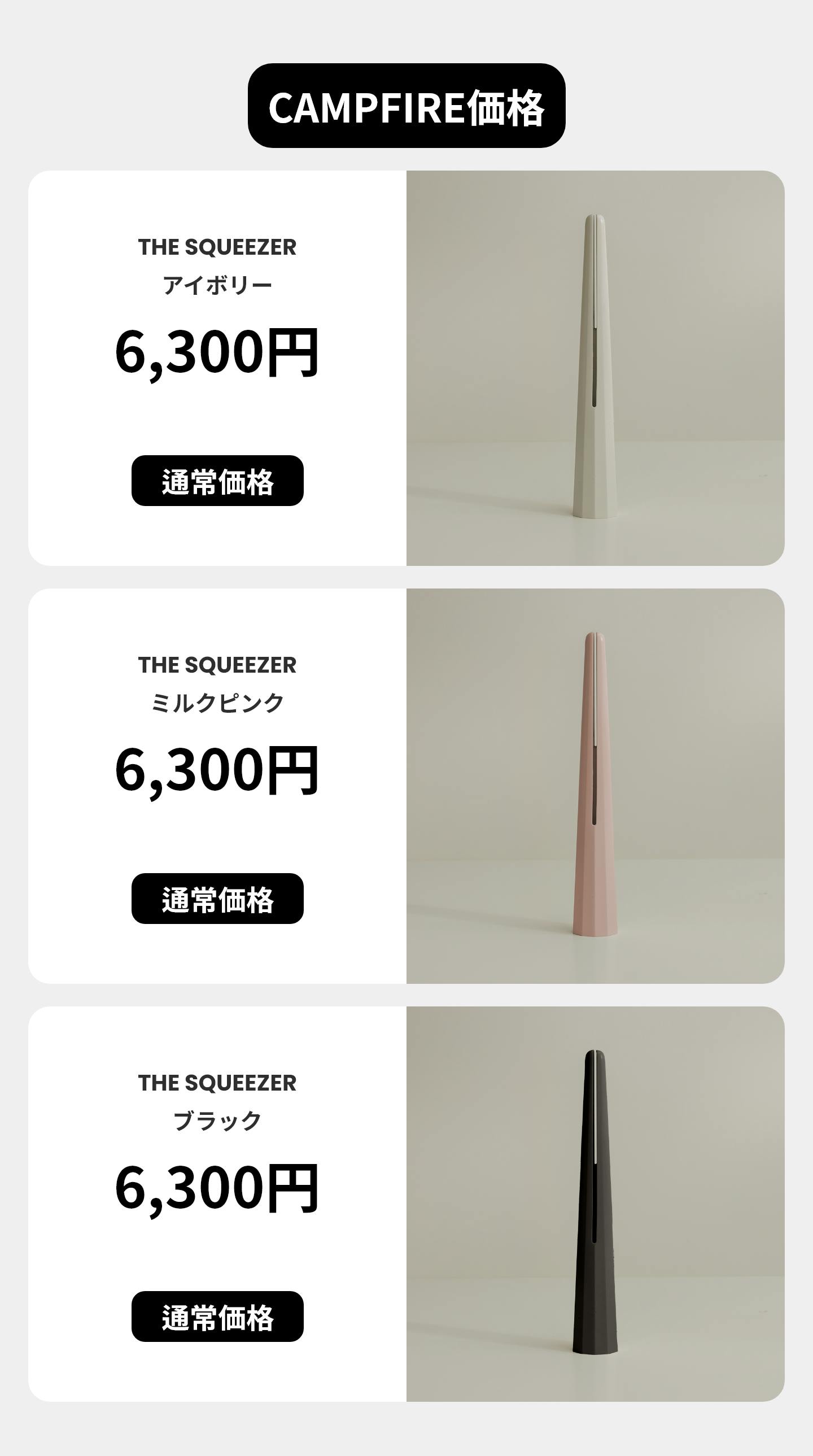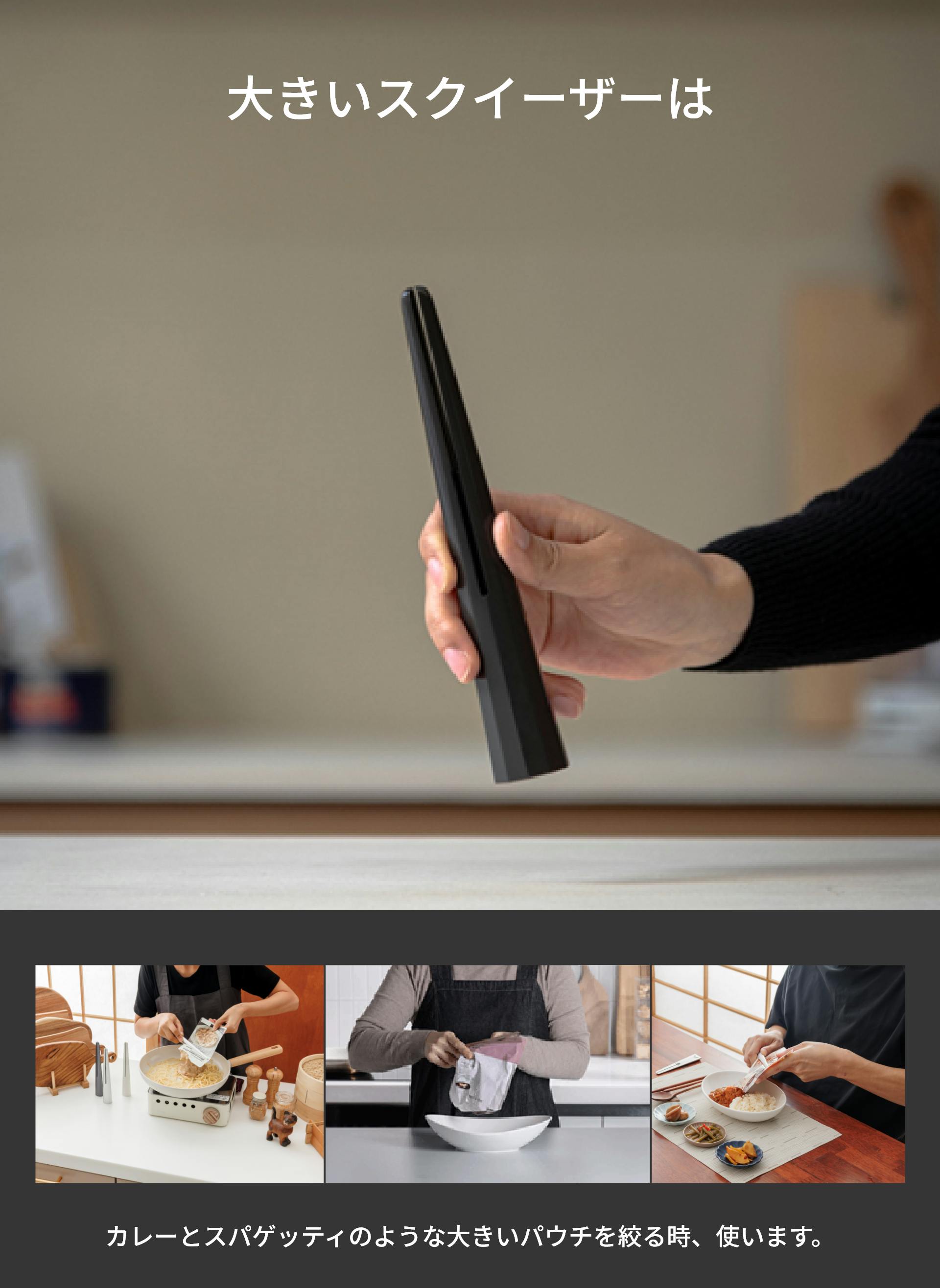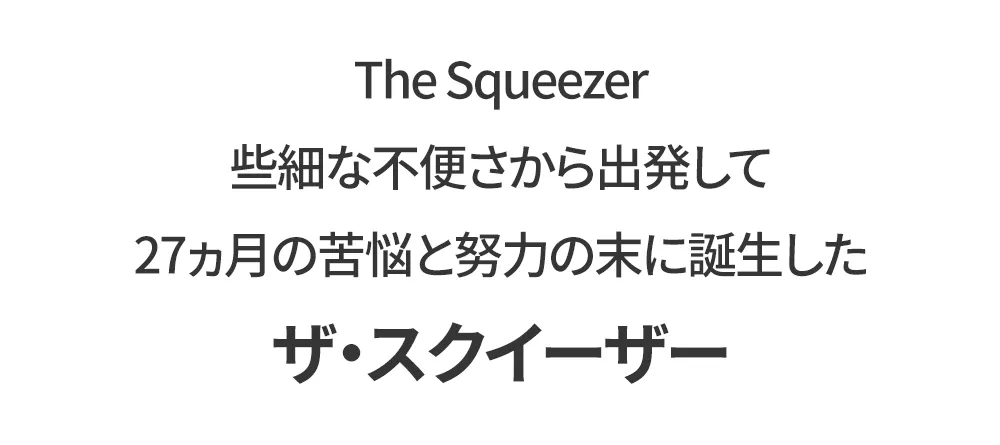 メタルで作られ曲がる心配もなく、力を入れずにラクに絞れる硬さの「ザ・スクイーザー」を作ることになりました。