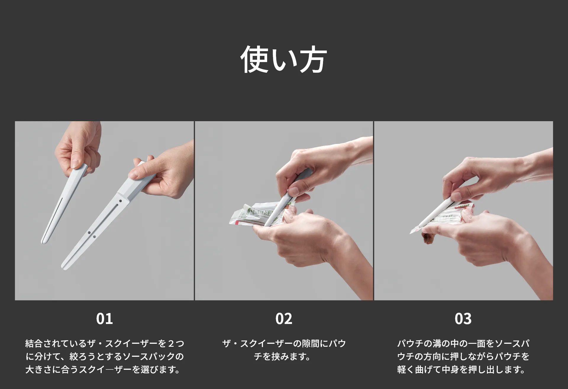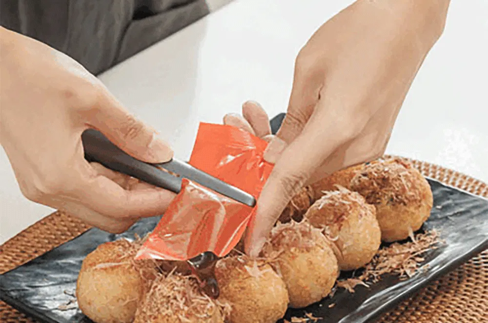 1つの製品でいろんな大きさのソースを絞れるように研究とテストを重ねました。