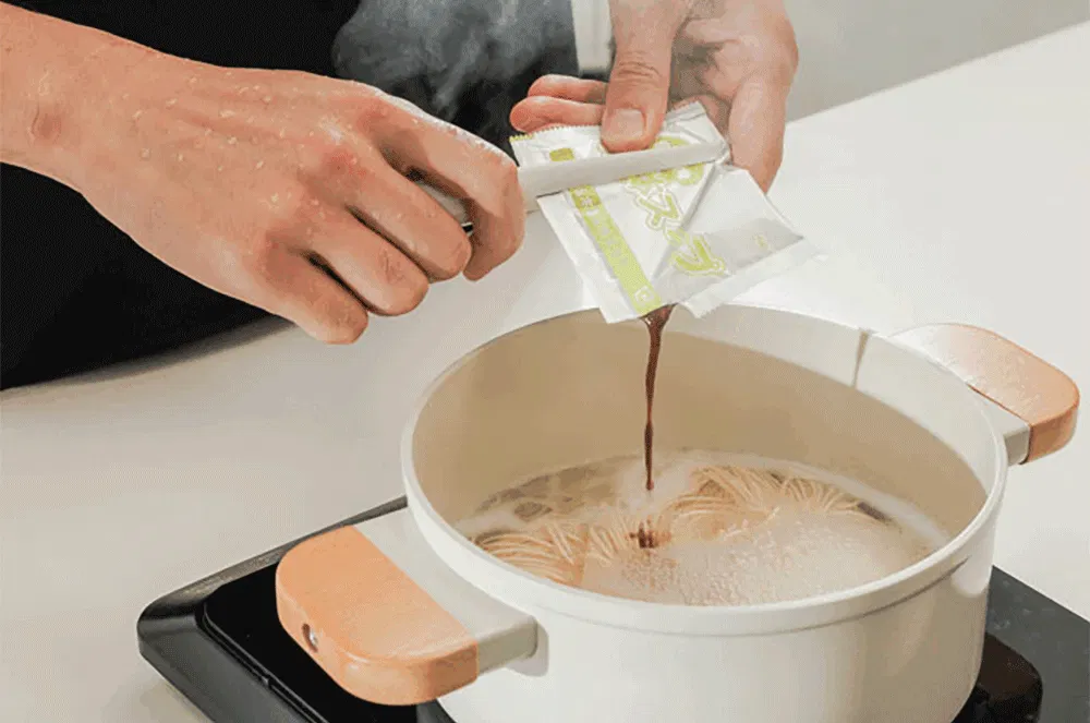 衛生を考えた製品処理で、どんなソースでも簡単に汚れが落ちるように制作し、台所用洗剤をつけて流し湯で簡単に汚れが取れます!