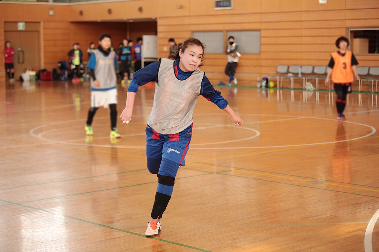 高校にサッカー推薦で入るも、発症してサッカーができなくなり、週2回通院します。高校卒業後に結婚し、夫に「サッカーとフットサルは違うよ」と誘ってもらい、個人参加型フットサル(個サル)に行くようになります。その後、二児の母に。